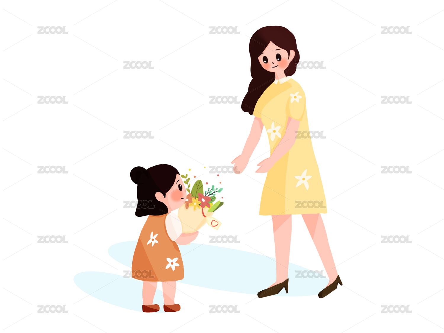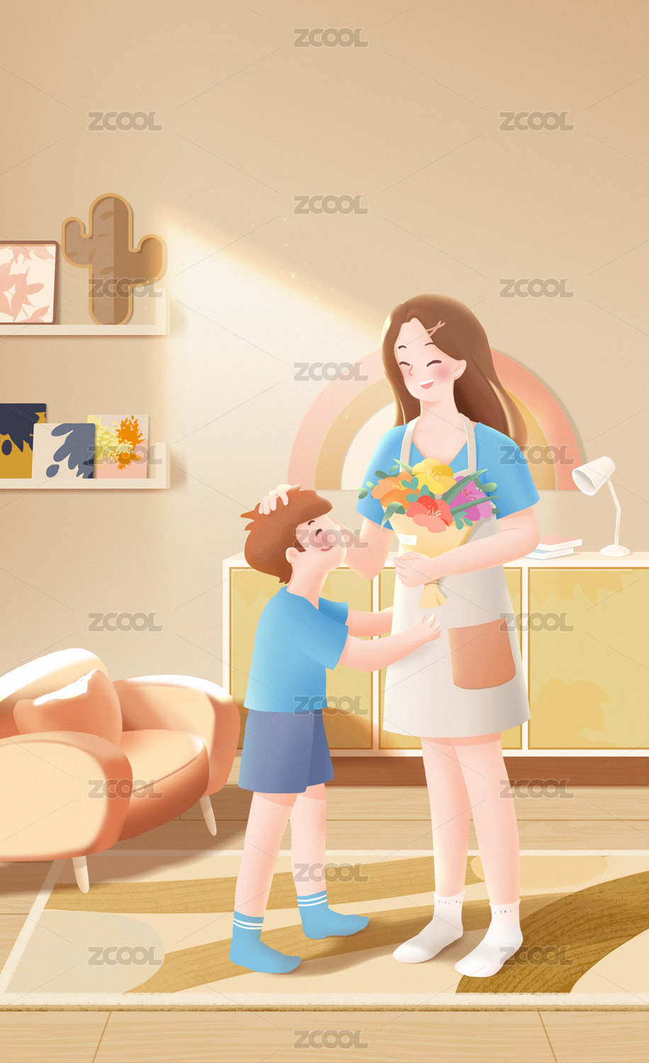 母親節(jié)親子獻花插畫海報