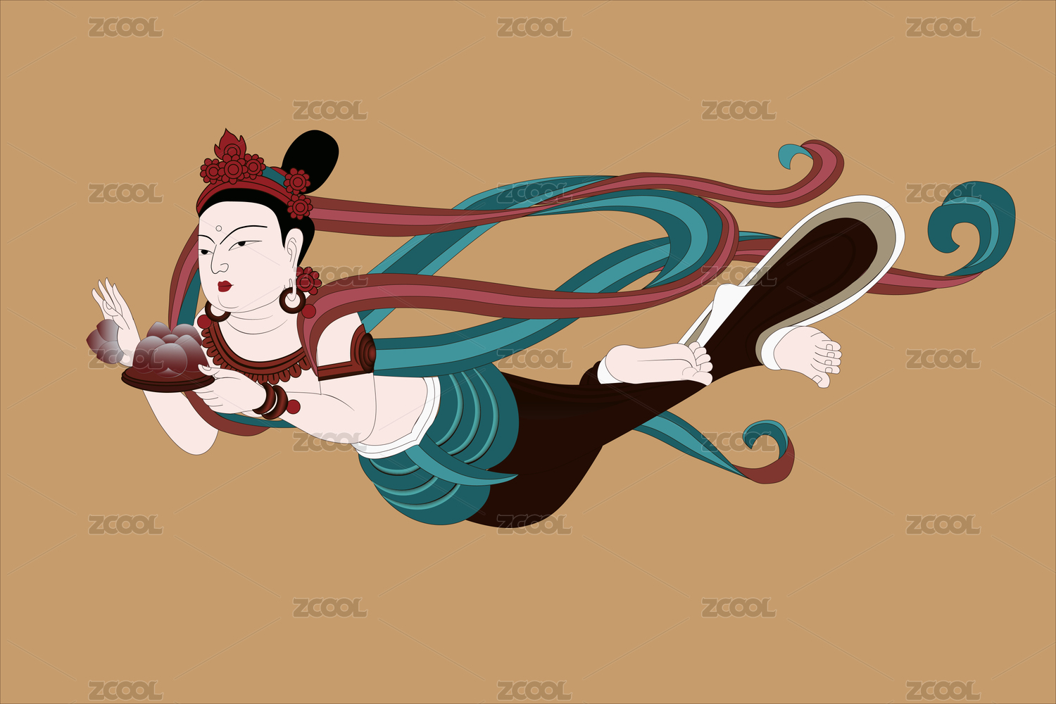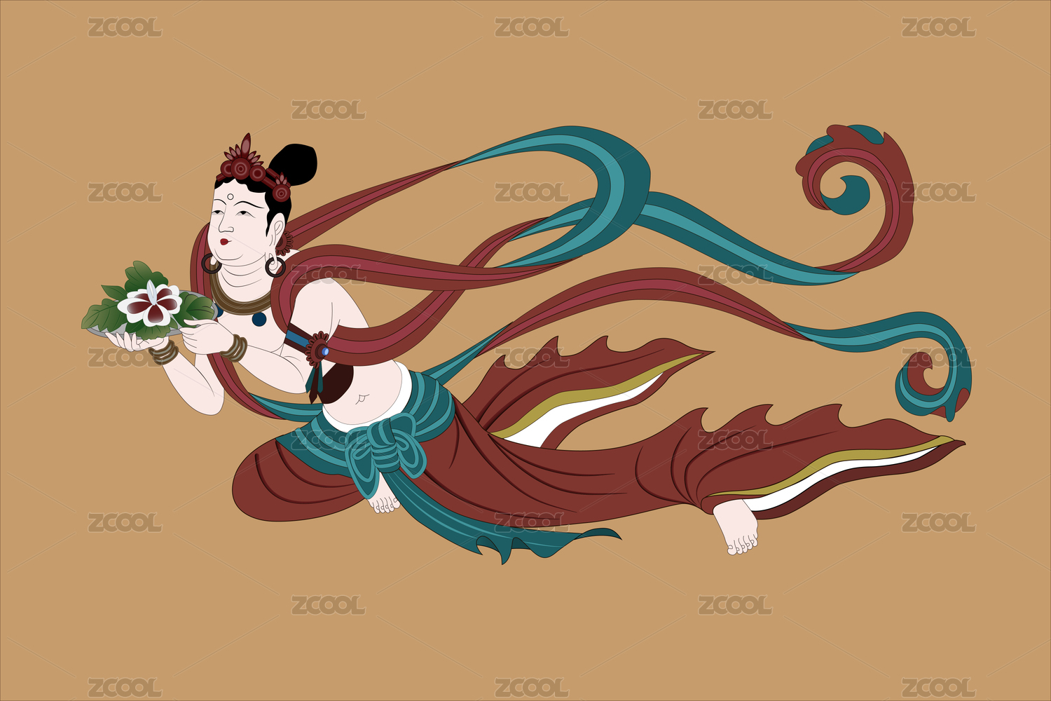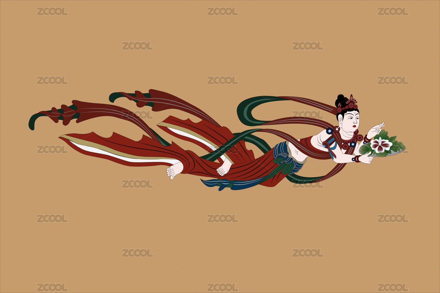 敦煌壁畫獻花飛天矢量圖