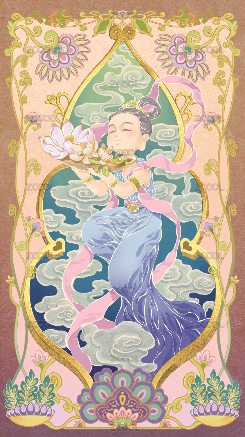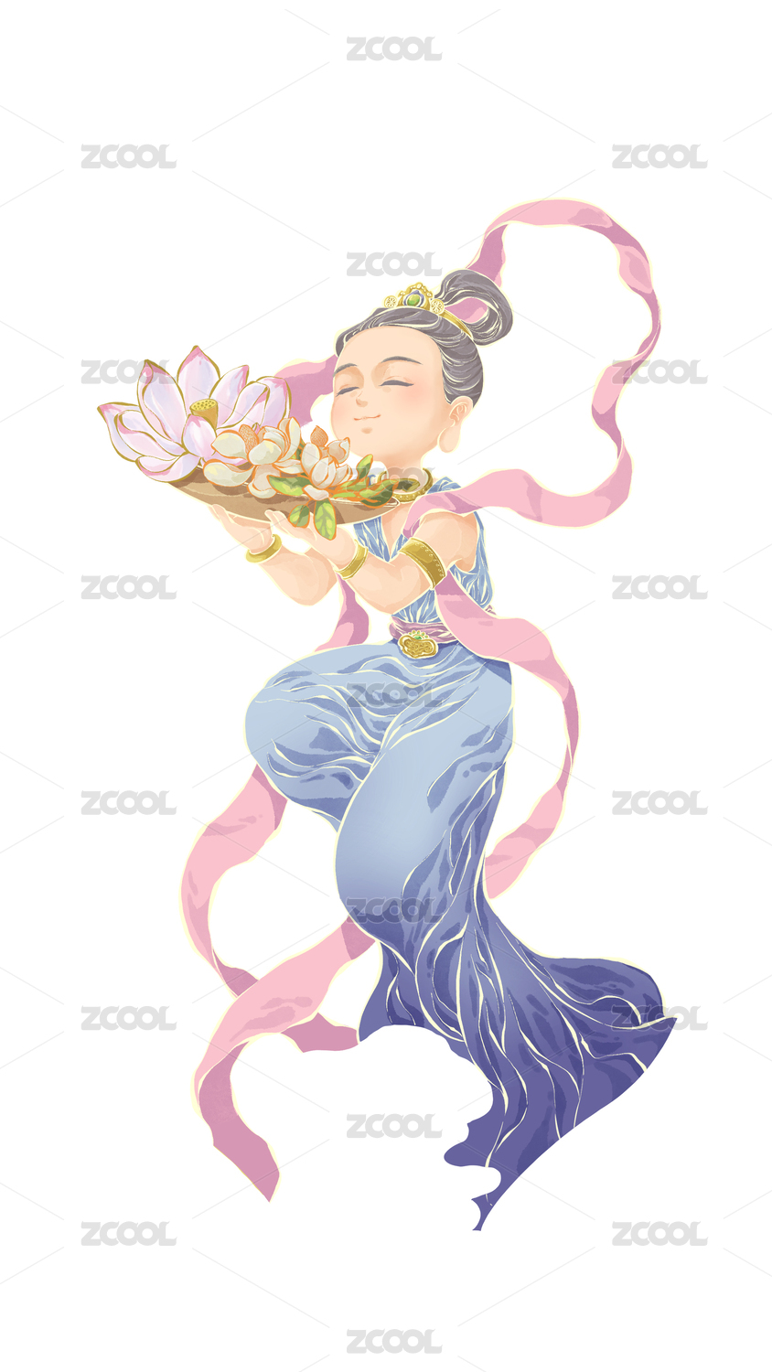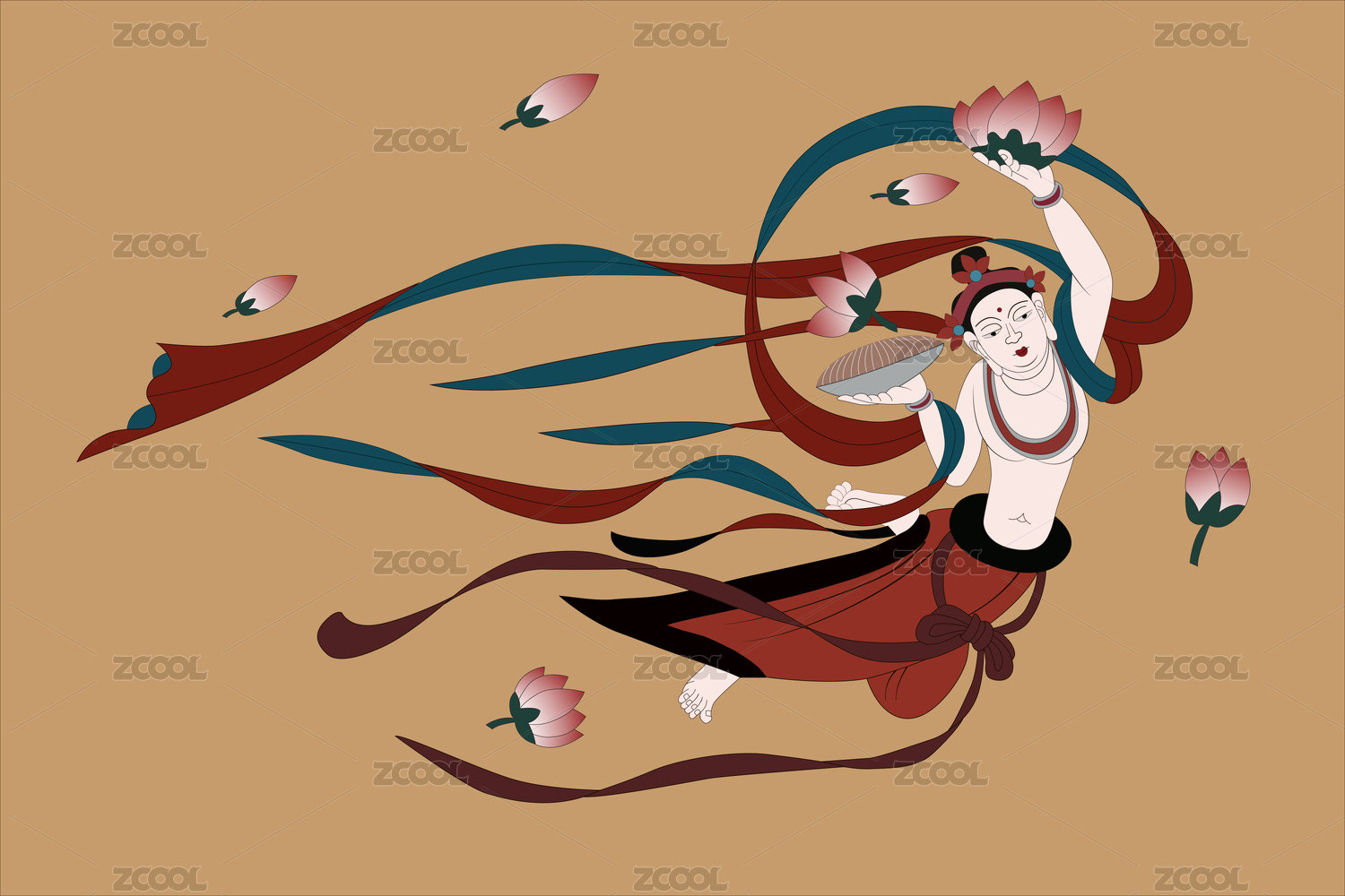 敦煌壁畫獻花飛天矢量圖