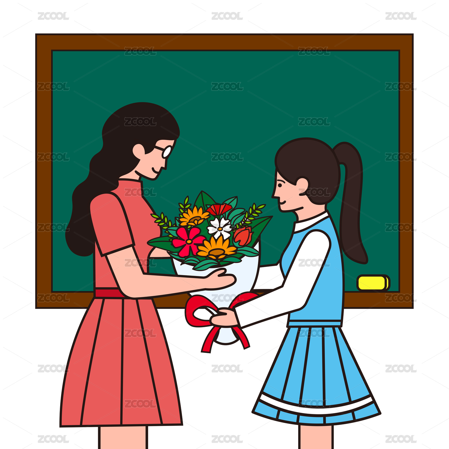 教師節(jié)給老師獻花矢量插畫