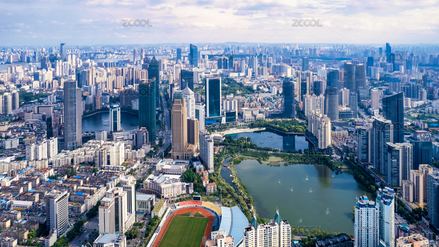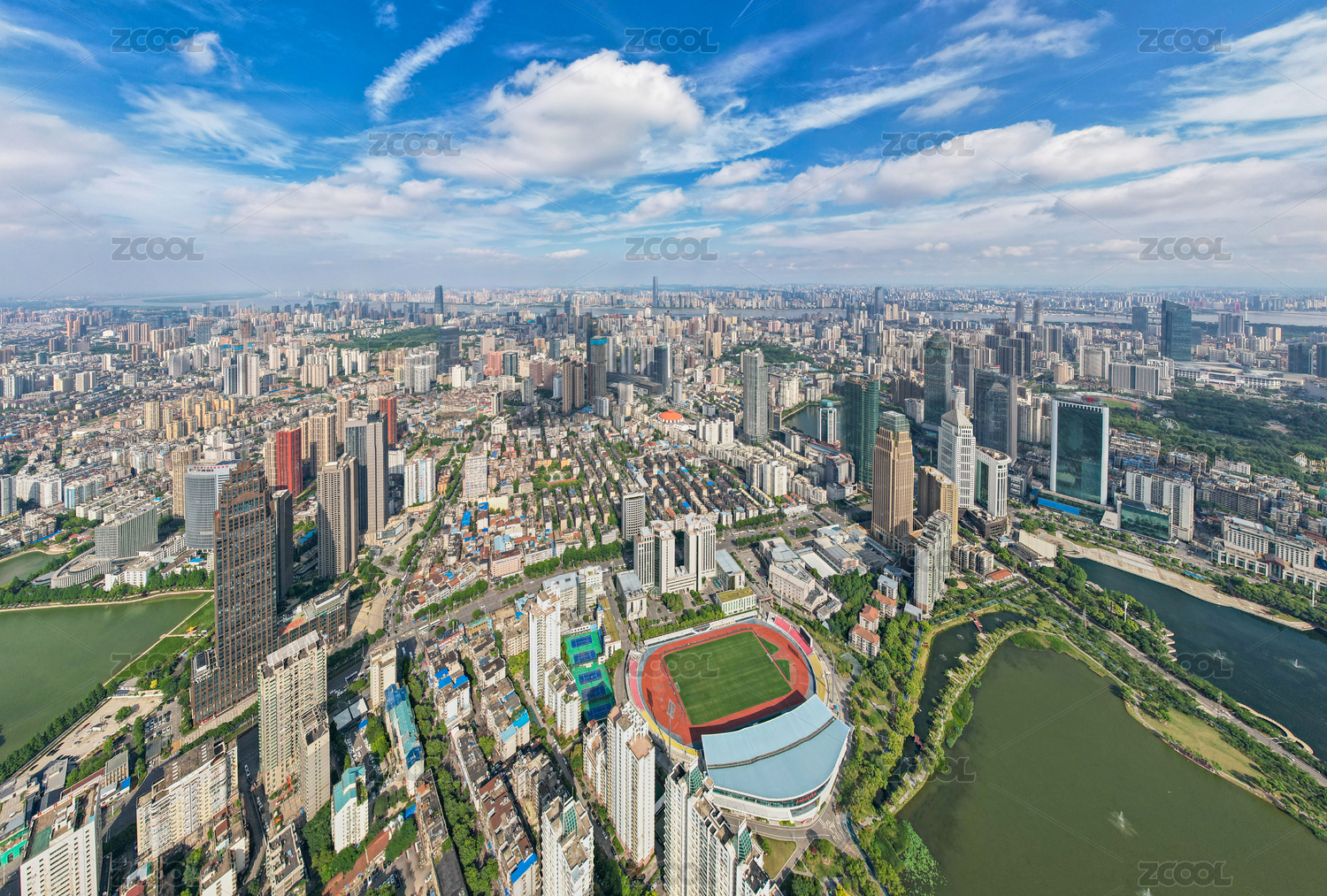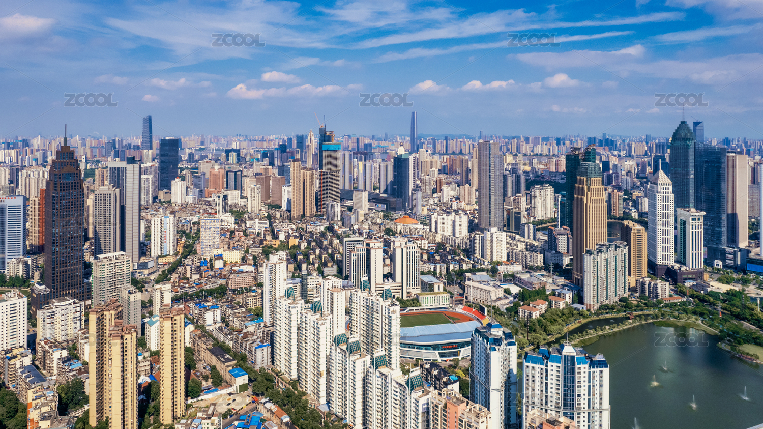 中國(guó)湖北武漢西北湖CBD建筑群晴天遠(yuǎn)景
