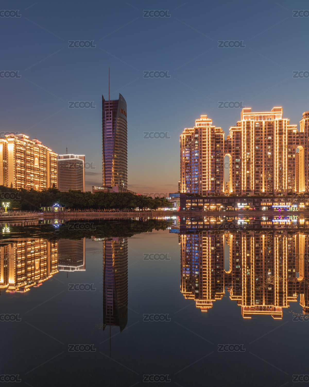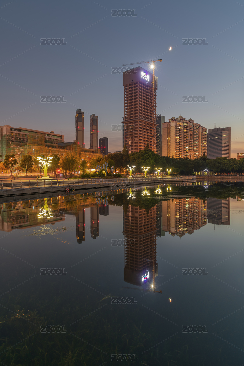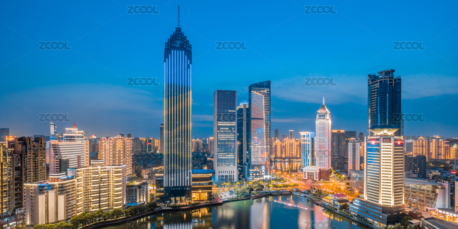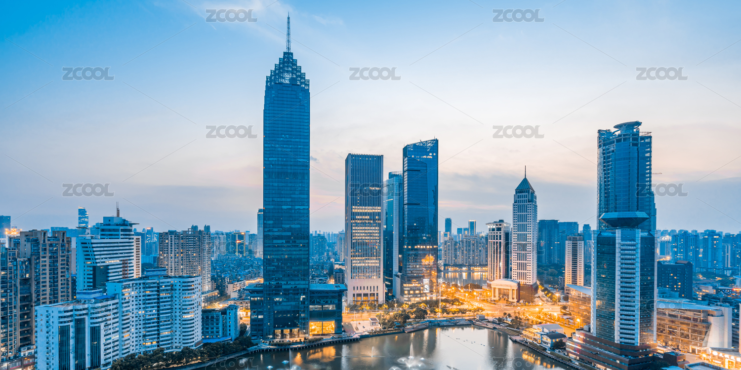 中國(guó)湖北武漢漢口西北湖CBD建筑黃昏風(fēng)光