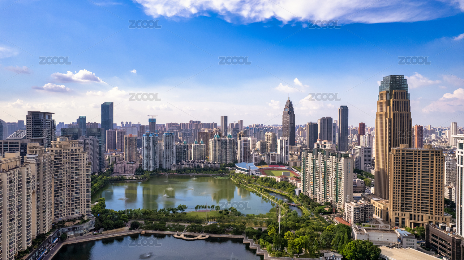 中國(guó)湖北武漢西北湖CBD建筑群風(fēng)光
