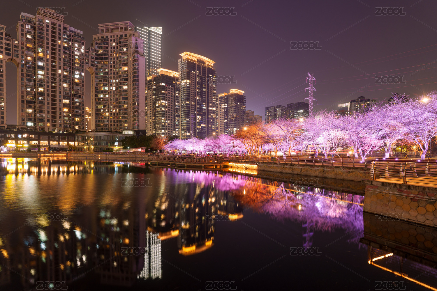 武漢西北湖櫻花夜景燈光秀
