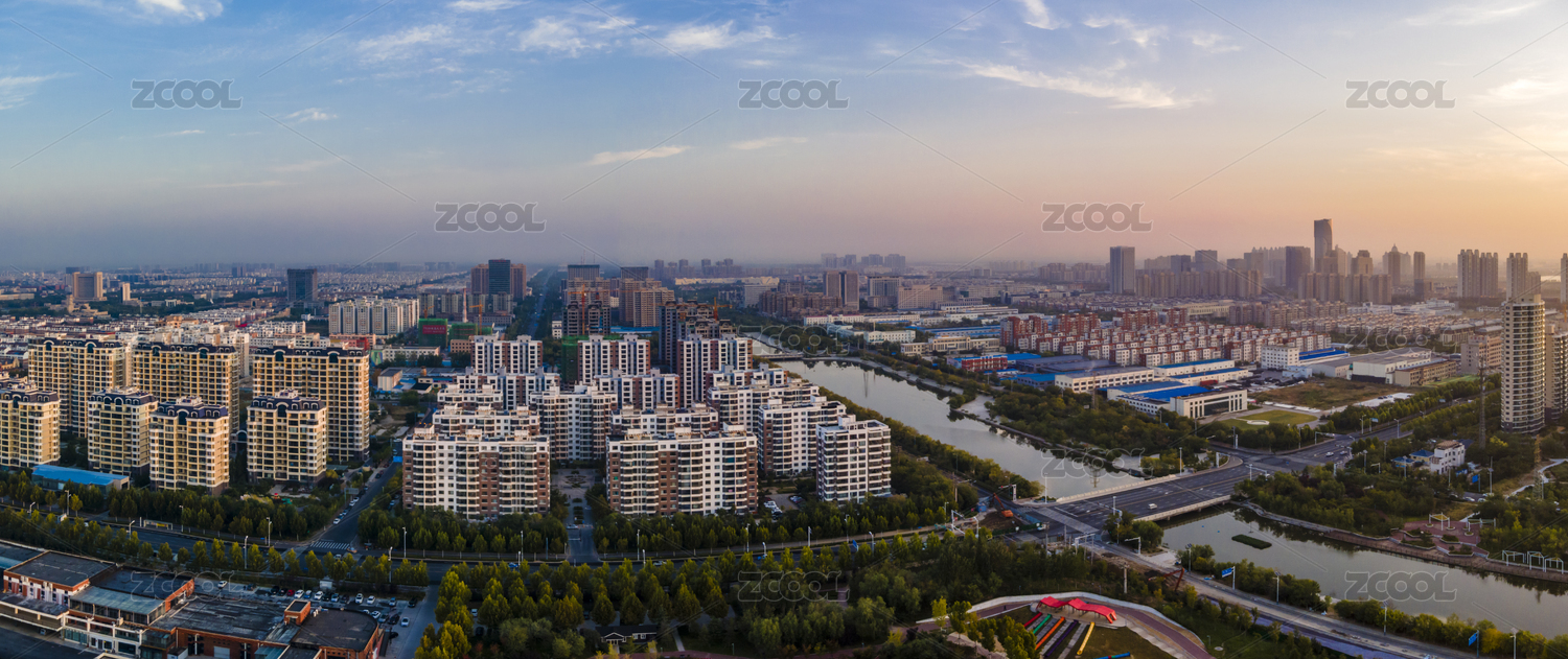 朝霞下的山東東營(yíng)城市建筑群航拍圖