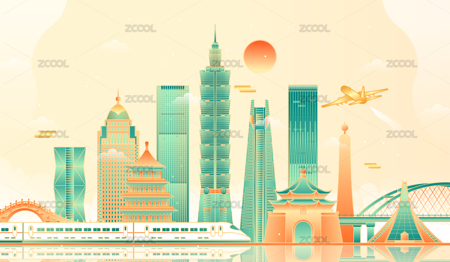 中國(guó)臺(tái)灣建筑群矢量插畫(huà)