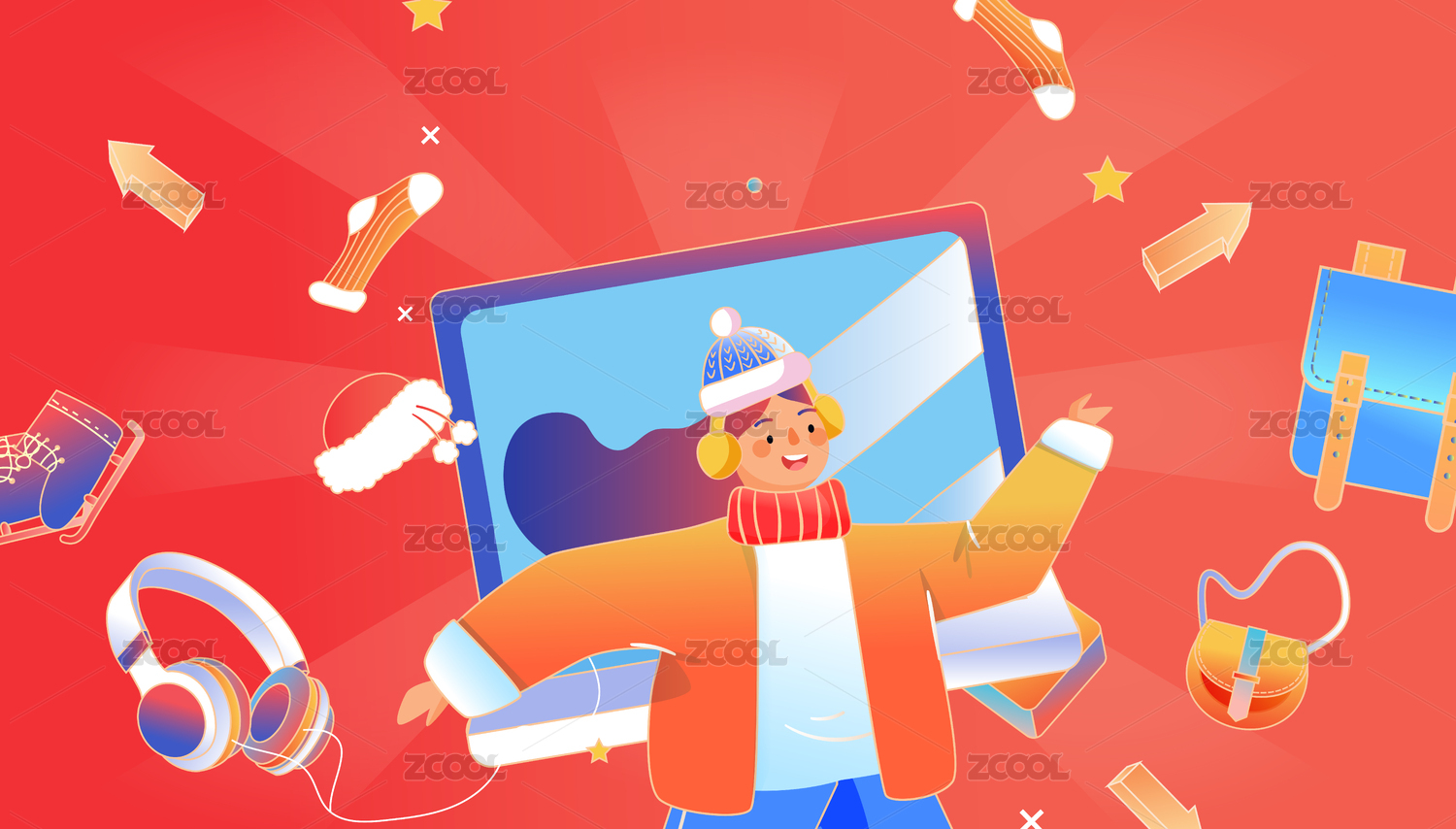 雙十二購(gòu)物節(jié)電商促銷活動(dòng)天貓?zhí)詫殐?yōu)惠卡通漸變矢量背景插畫