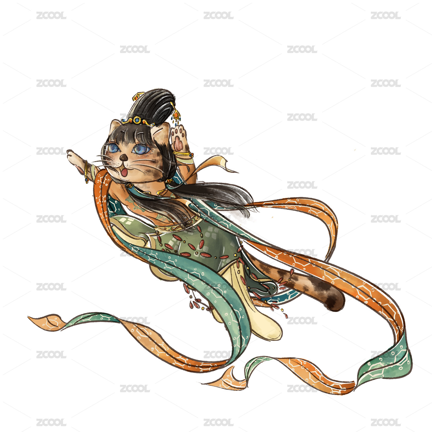 微笑的敦煌飛天貓?jiān)寰畧D案貓爪