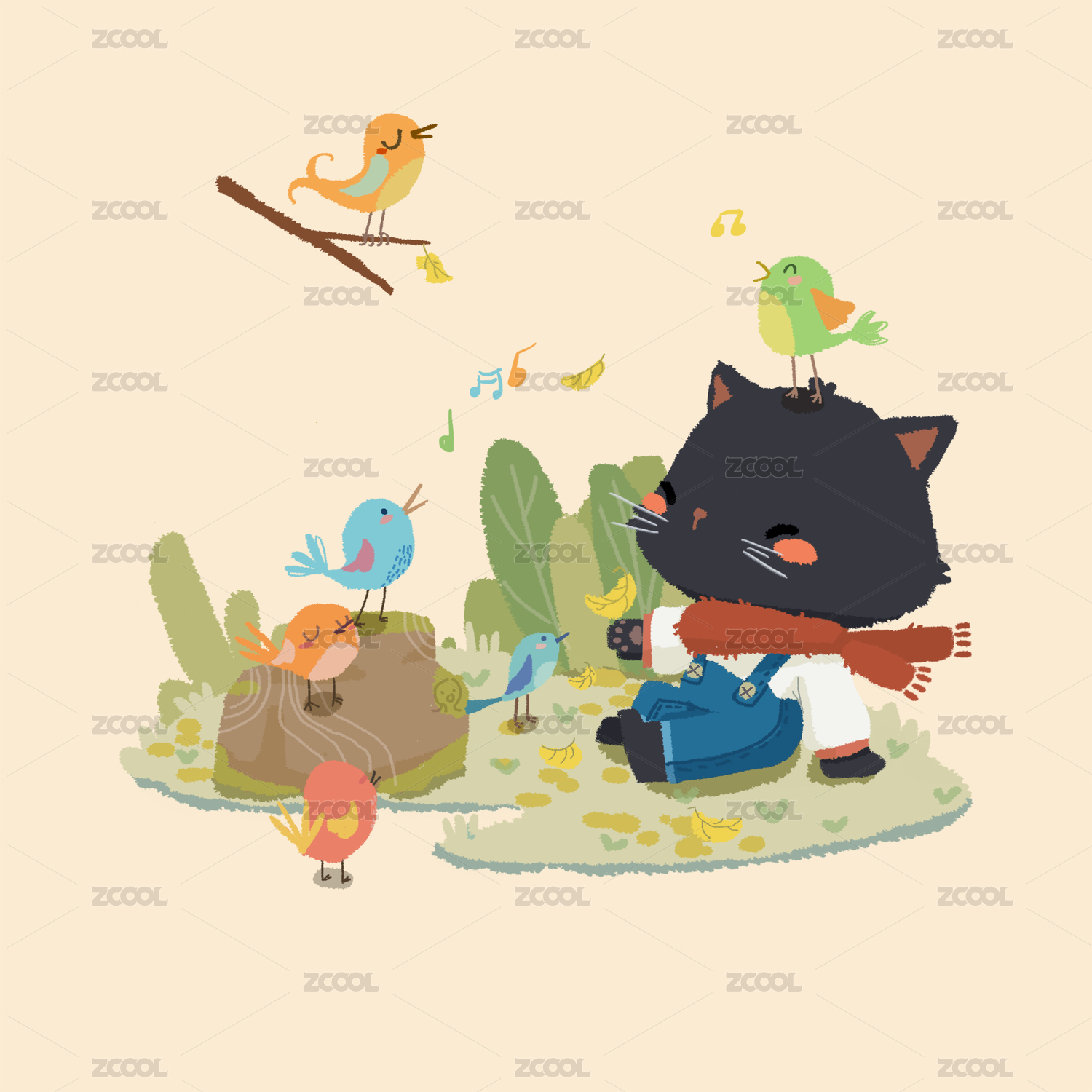 秋天貓?jiān)谖蓓斏峡磁菖?,板繪
