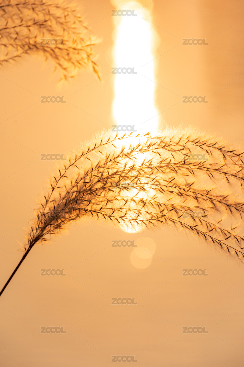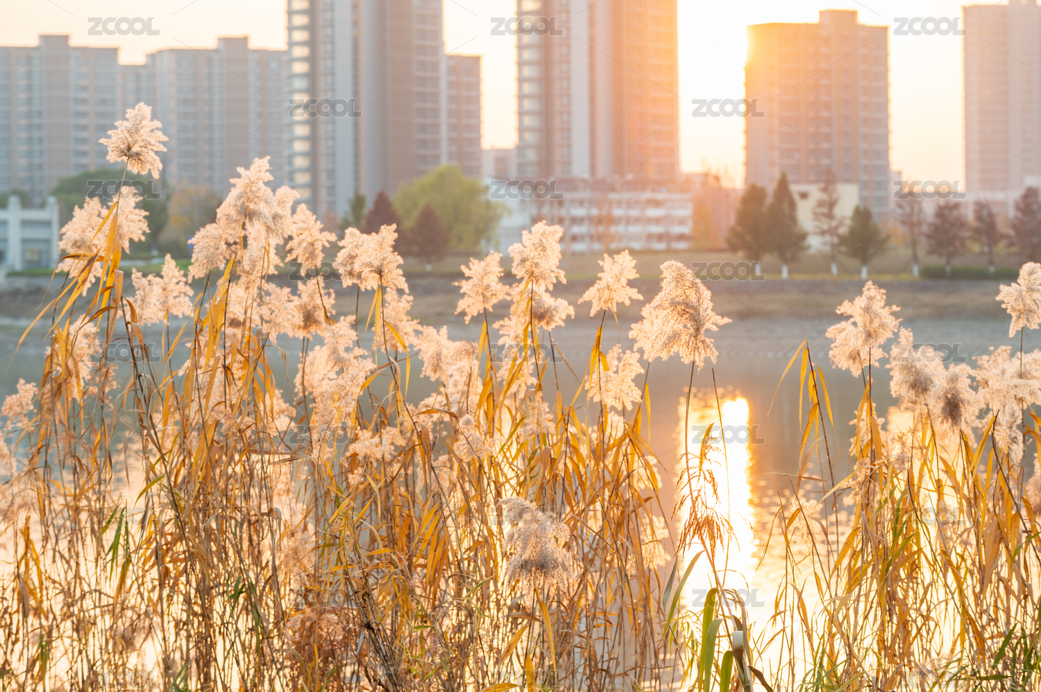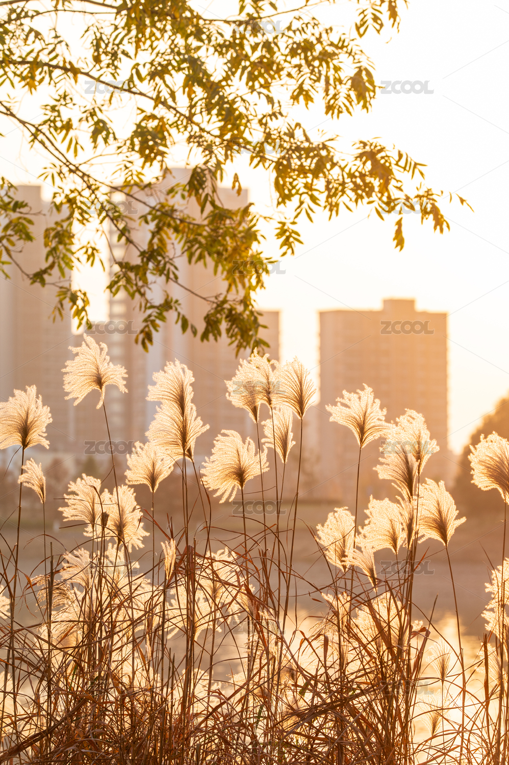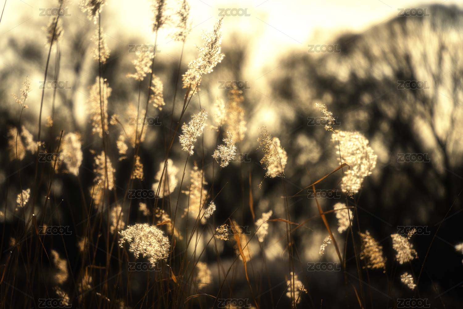 中國酒泉東風(fēng)航天城逆光蘆葦花與胡楊樹
