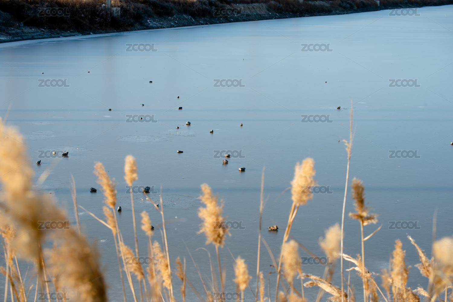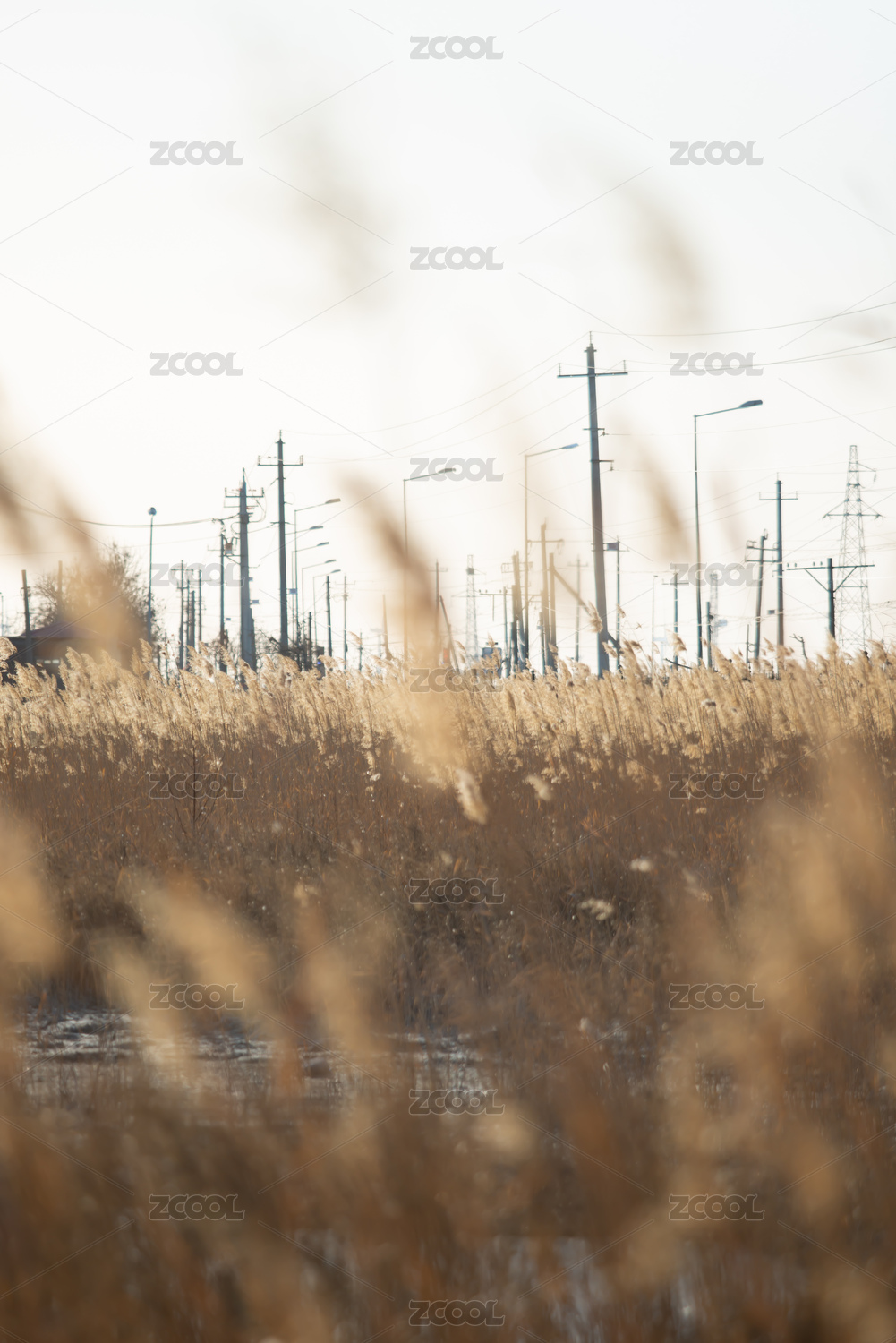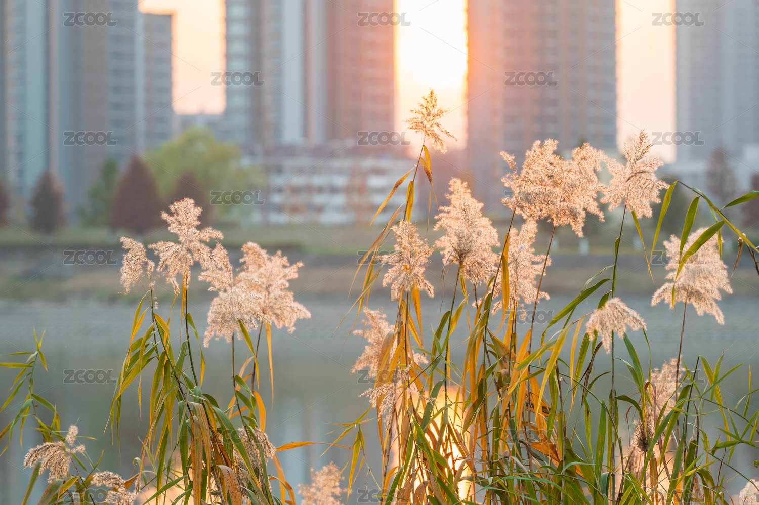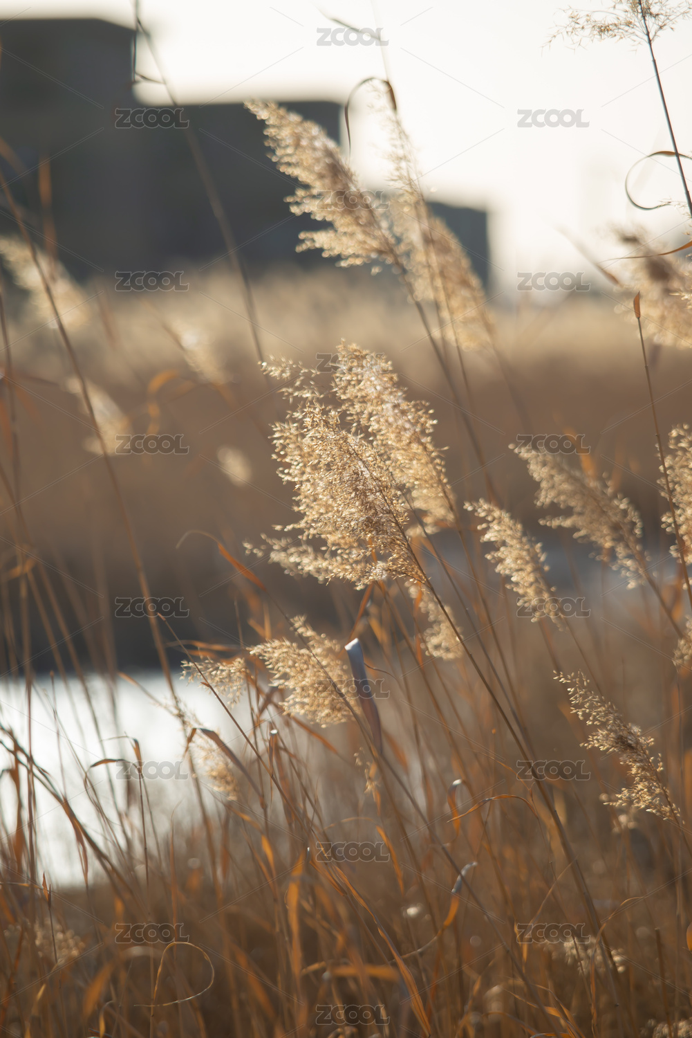 中國酒泉東風(fēng)航天城逆光蘆葦花與胡楊樹