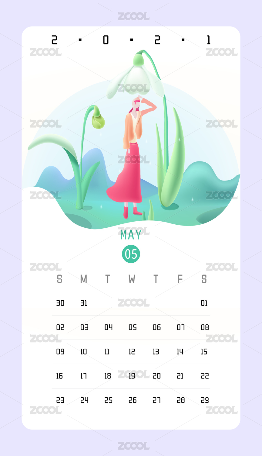 2021年臺(tái)歷五月手繪矢量插畫素材
