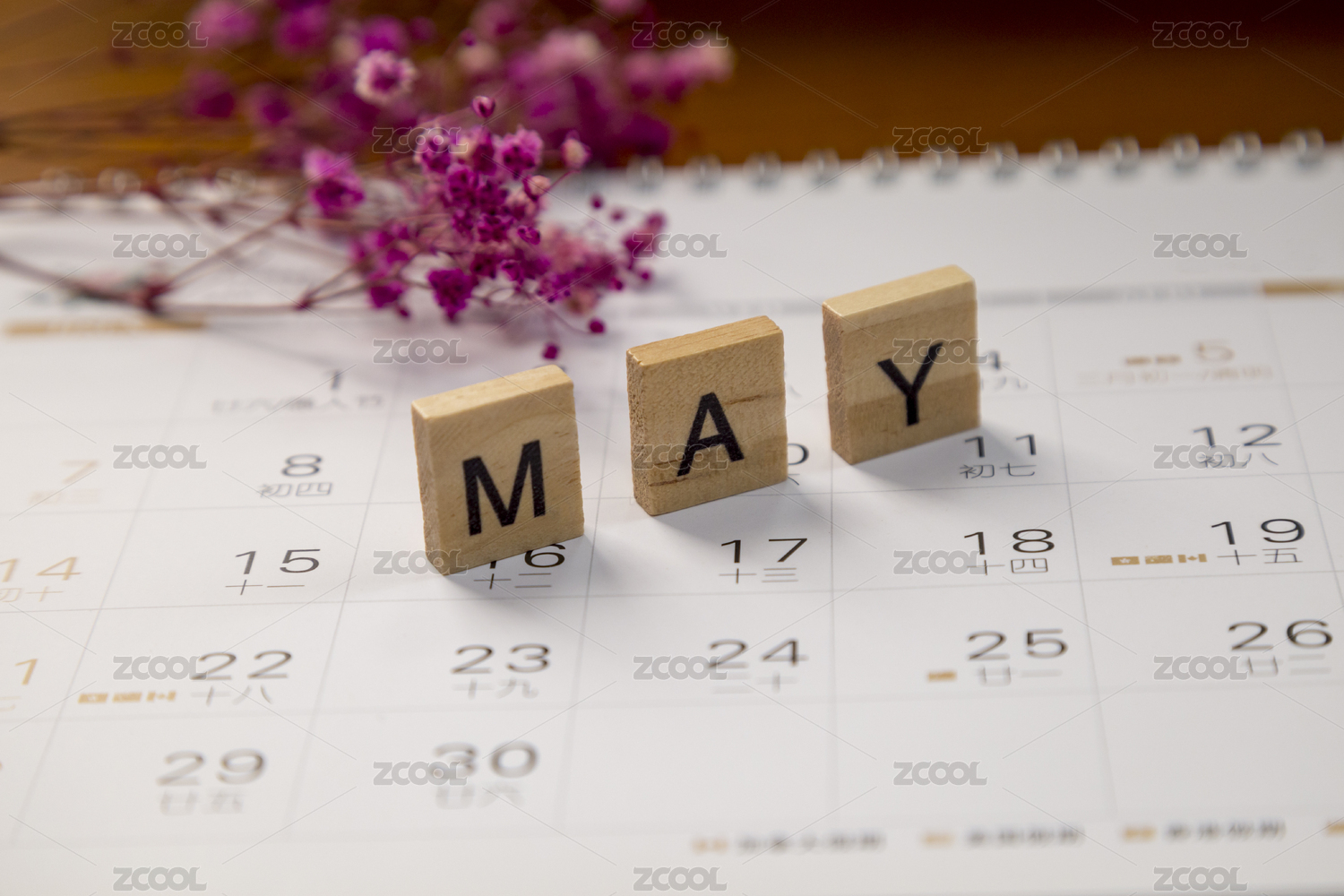 用木質(zhì)積木砌成的字母單詞五月