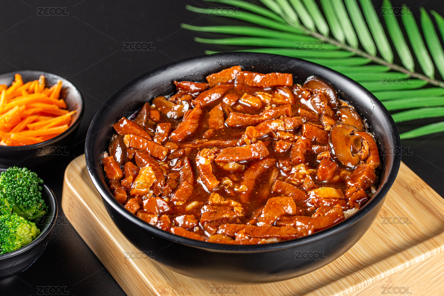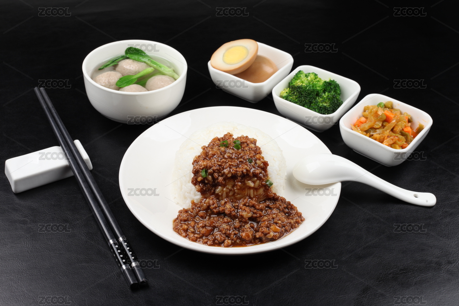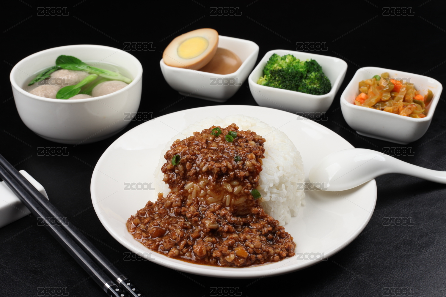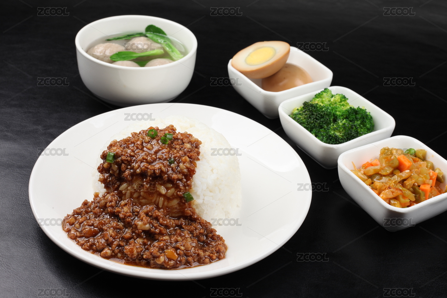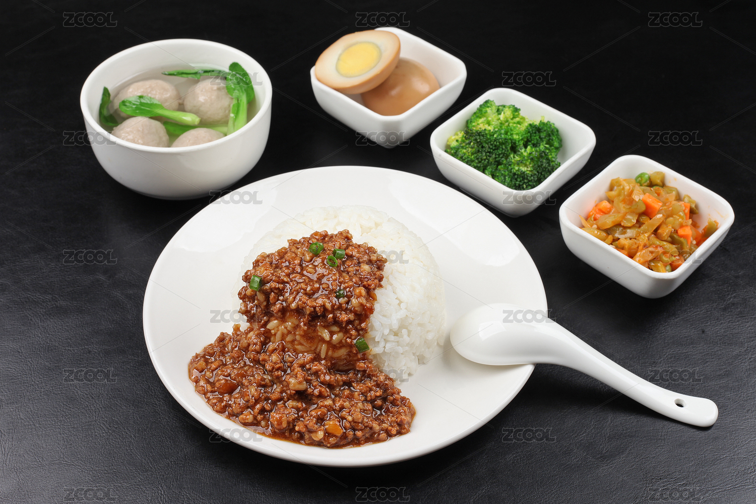 白色背景木紋底的一碗臺(tái)灣鹵肉飯?zhí)貙?/div>