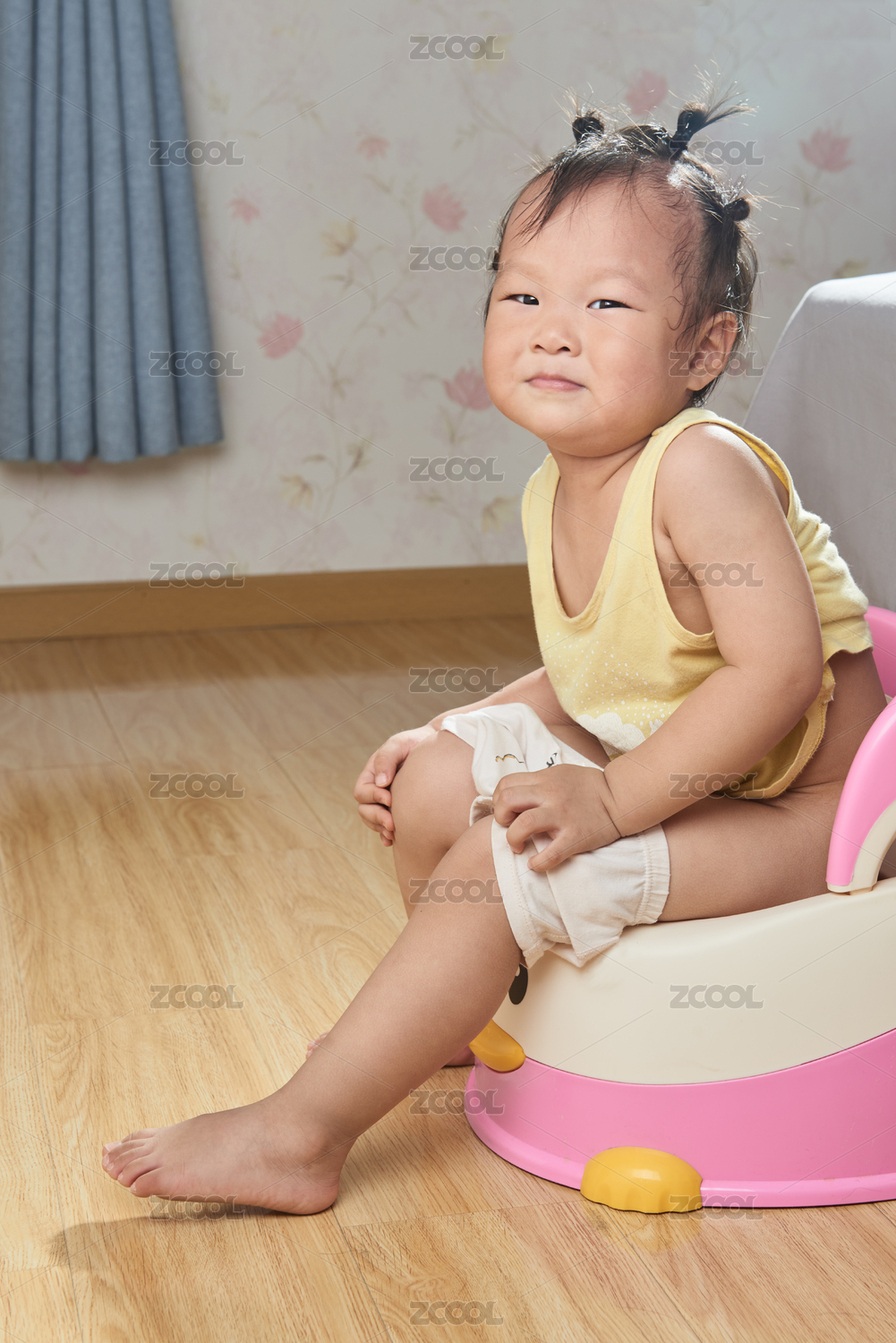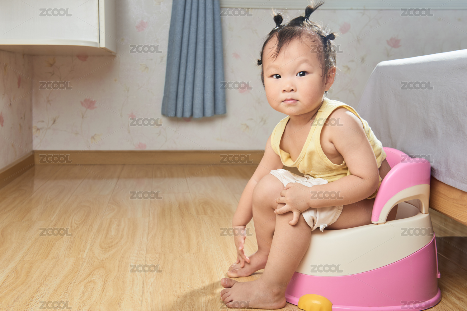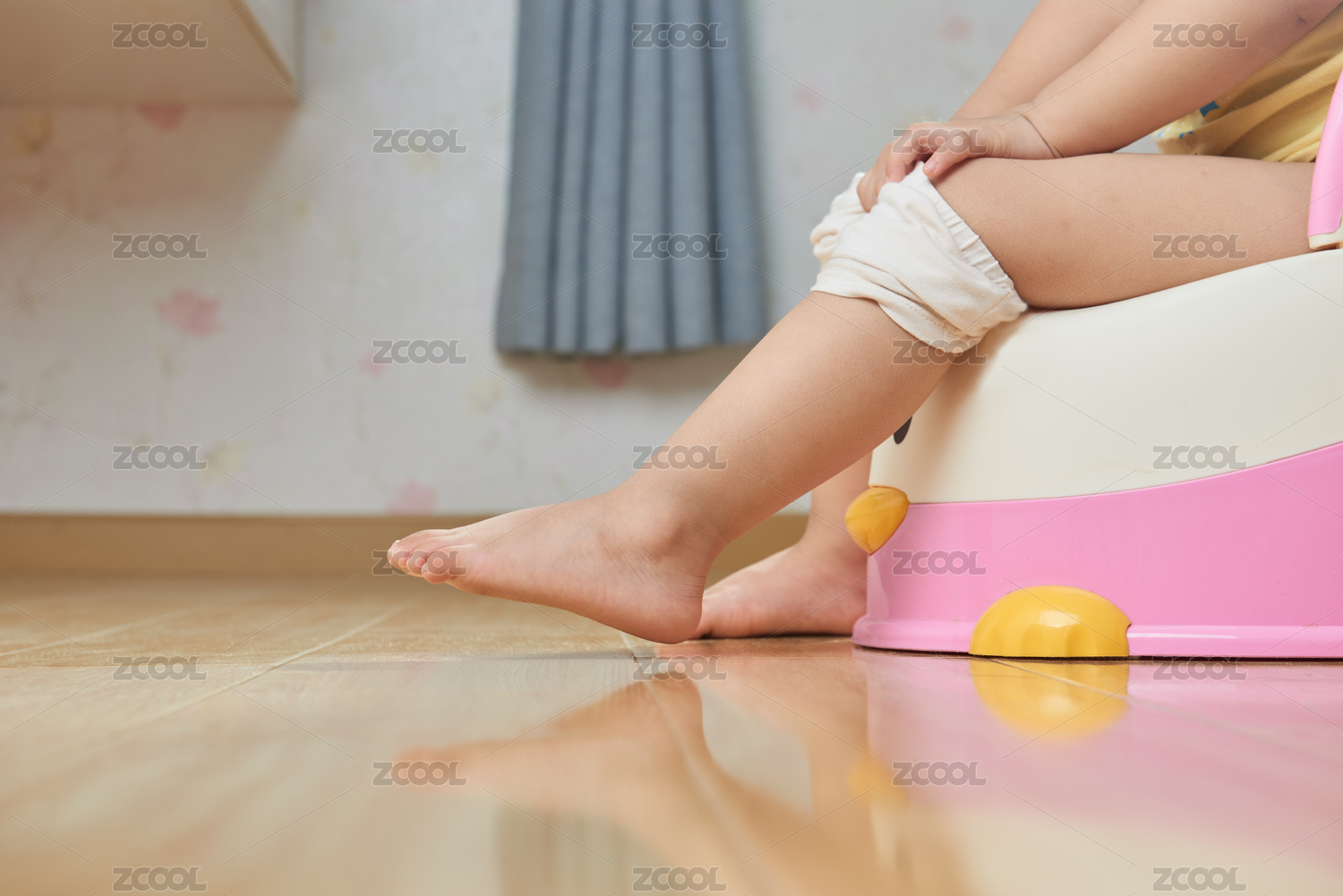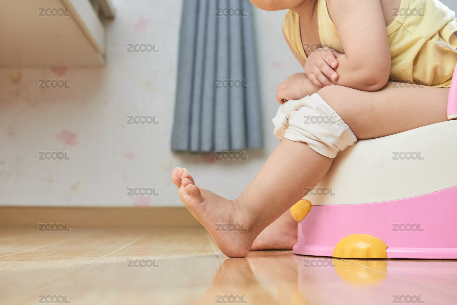 幼童在洗手間馬桶前的兒童馬桶上排便
