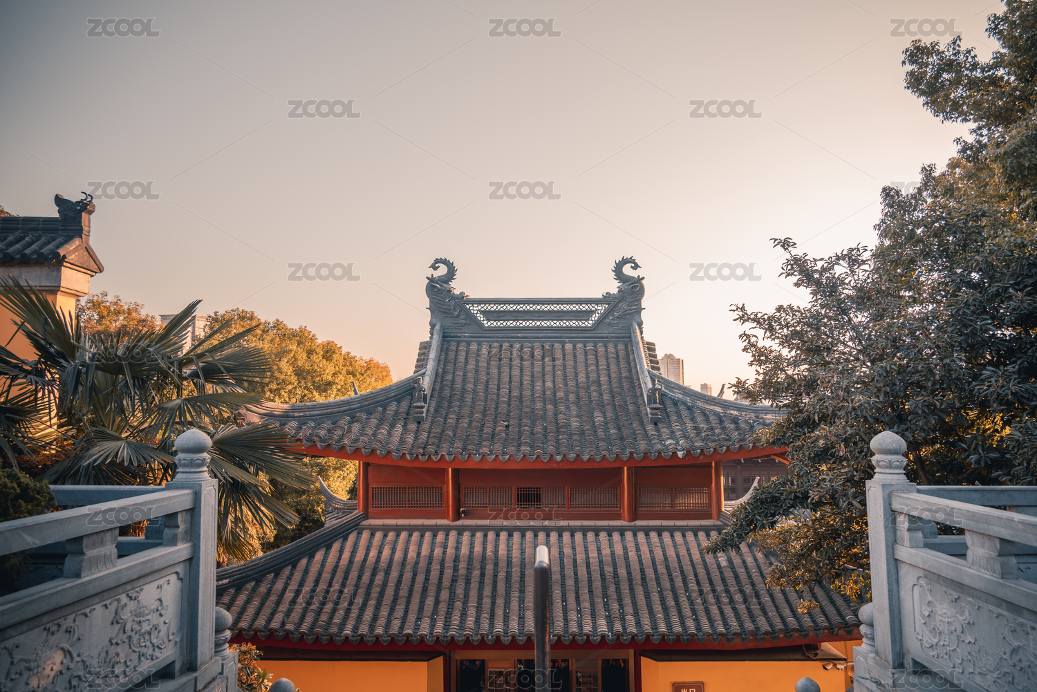 中國(guó)江蘇南京古雞鳴寺日落風(fēng)光