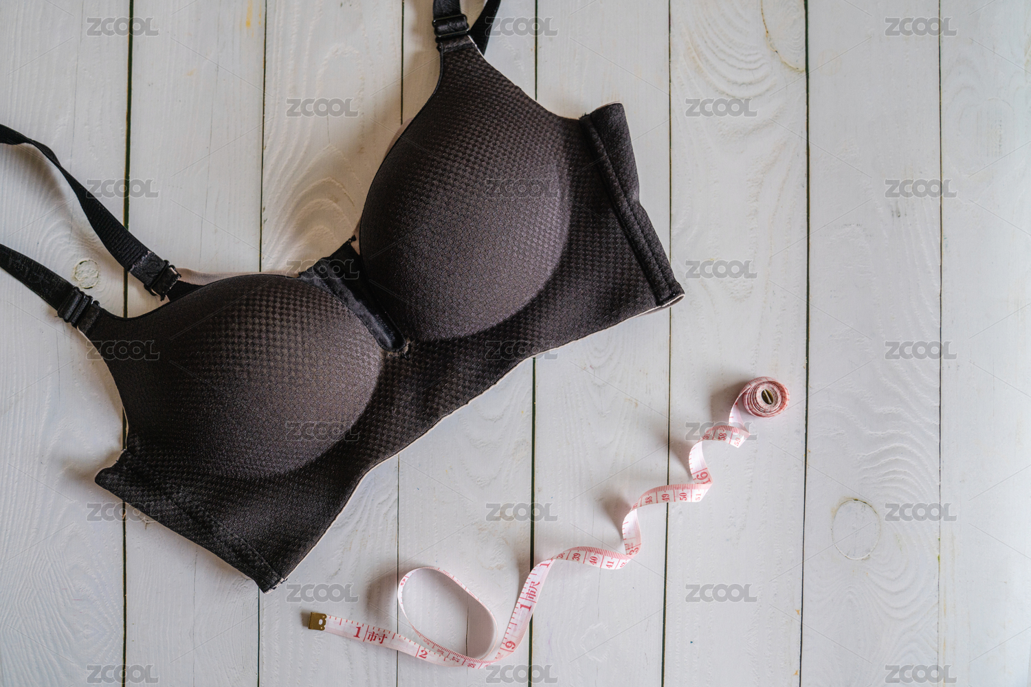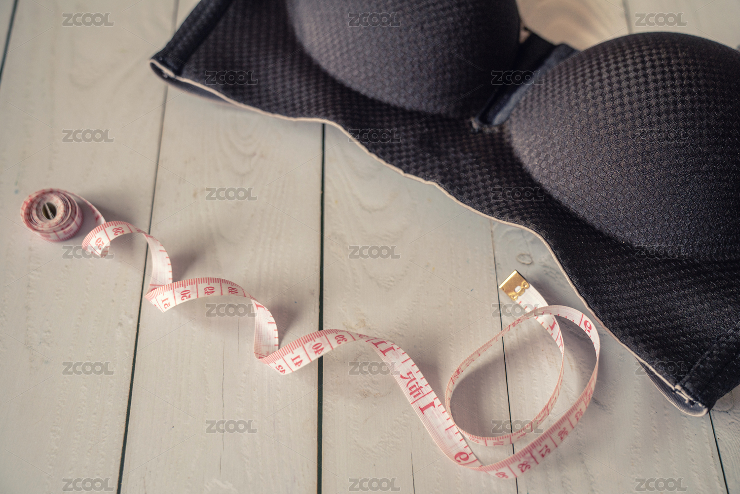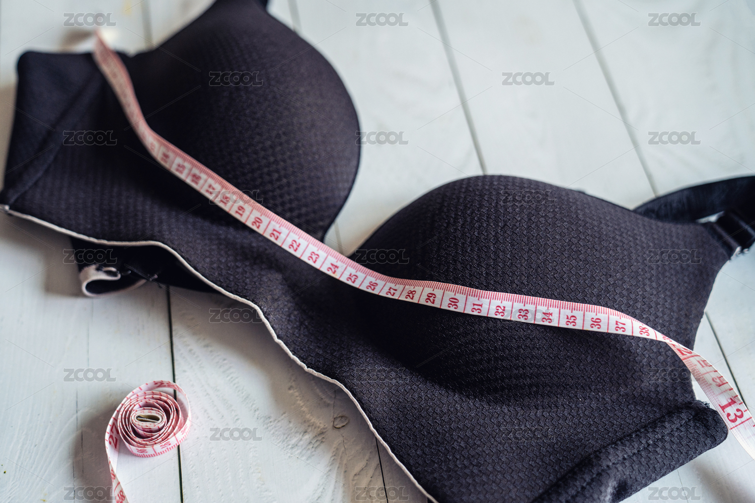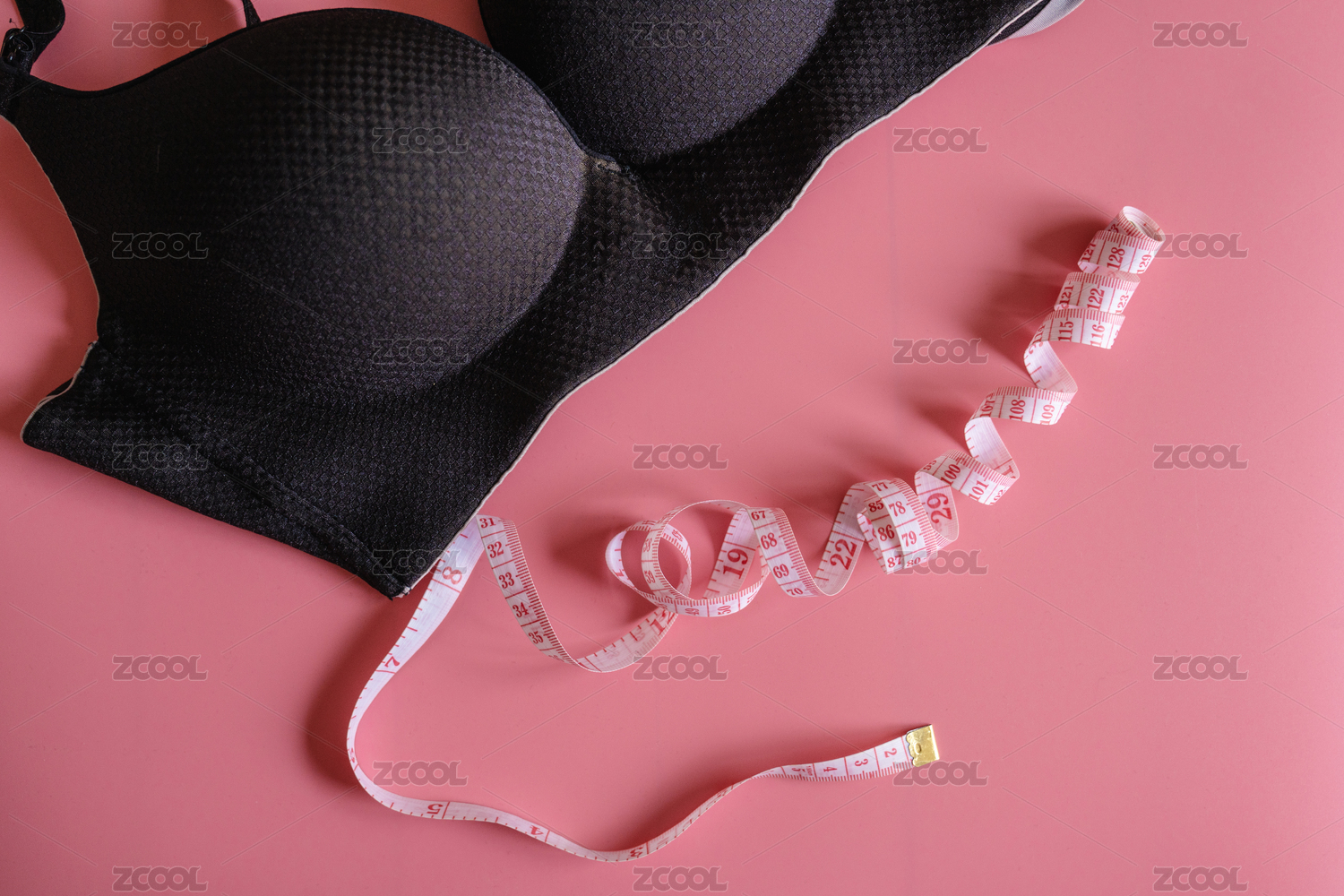 女性內(nèi)衣胸罩和皮尺,豐胸減肥概念、測量胸圍