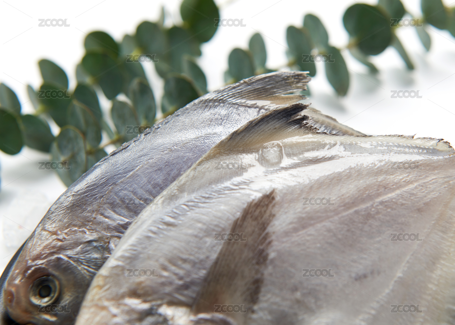 白色背景上擺放的冰鮮白鯧魚