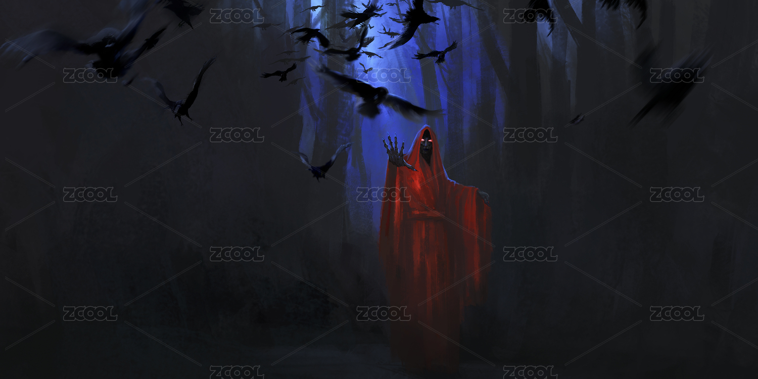 穿著紅袍的僵尸,數(shù)碼繪畫。