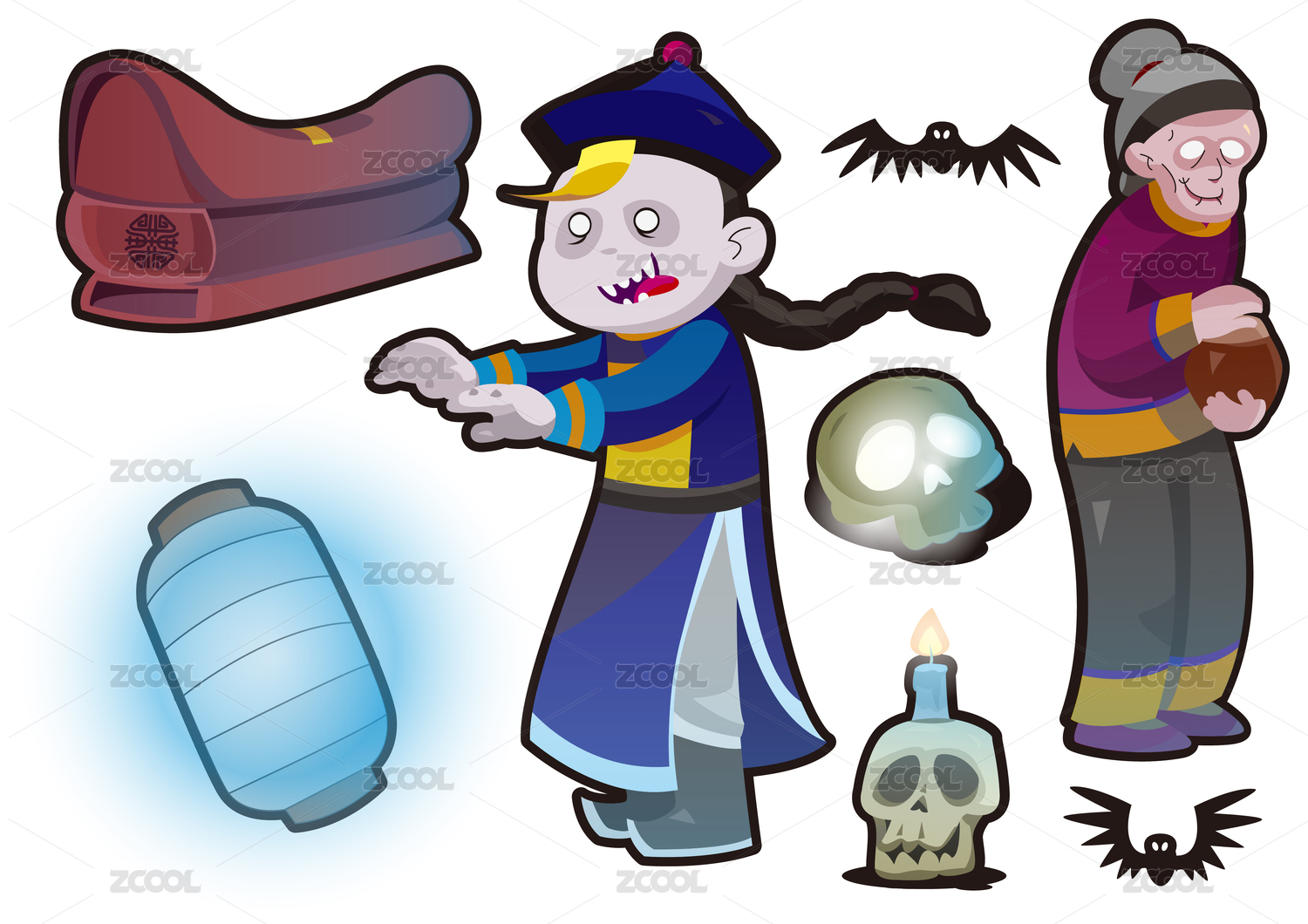 小清新風(fēng)格可清朝僵尸插畫人物元素