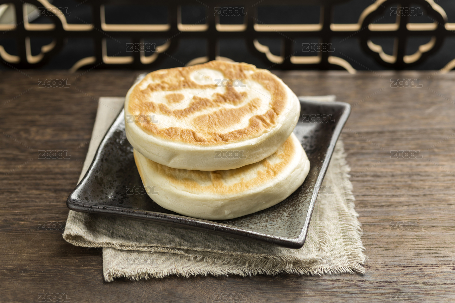 一盤發(fā)面餅特寫木桌面背景