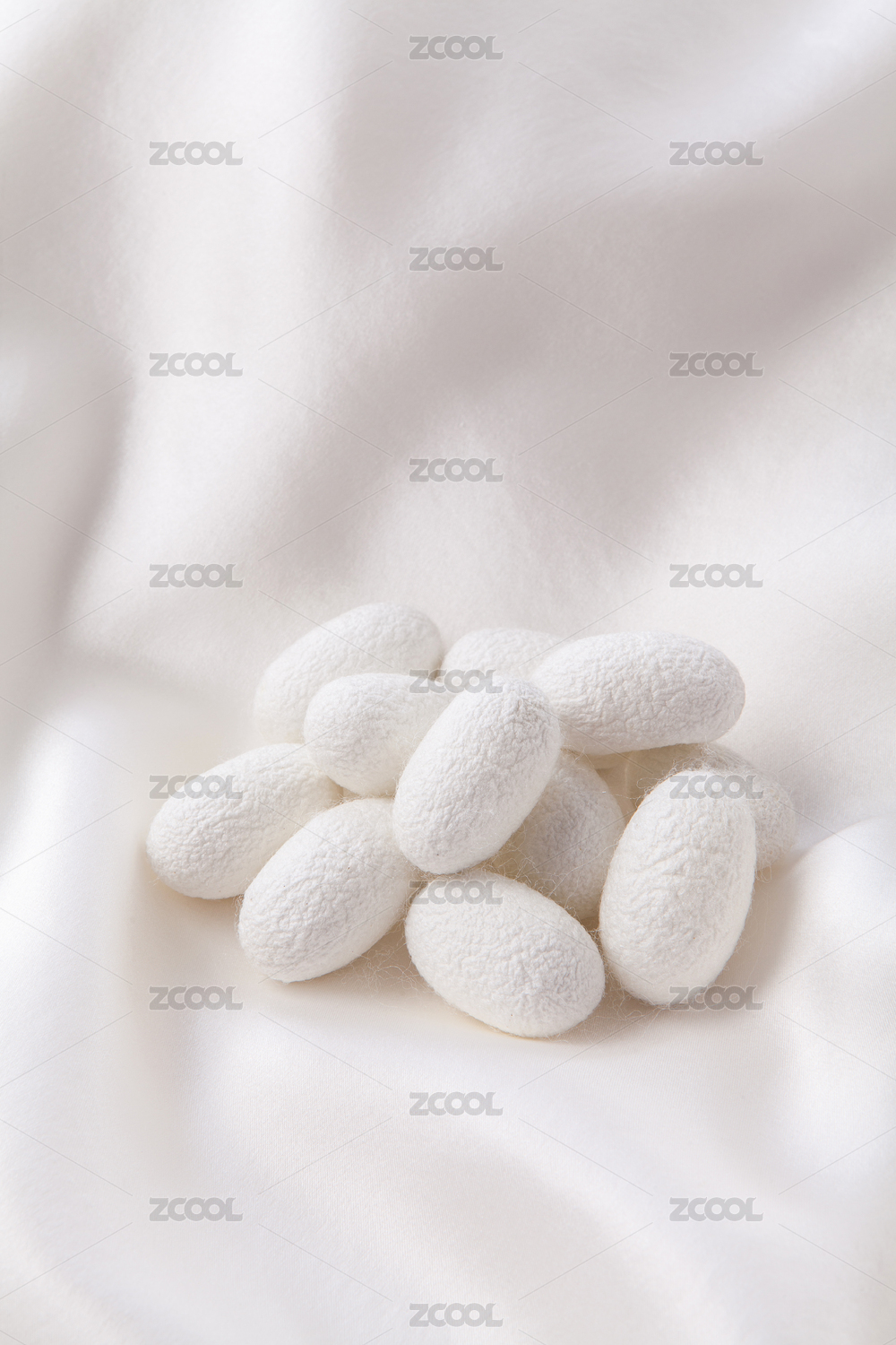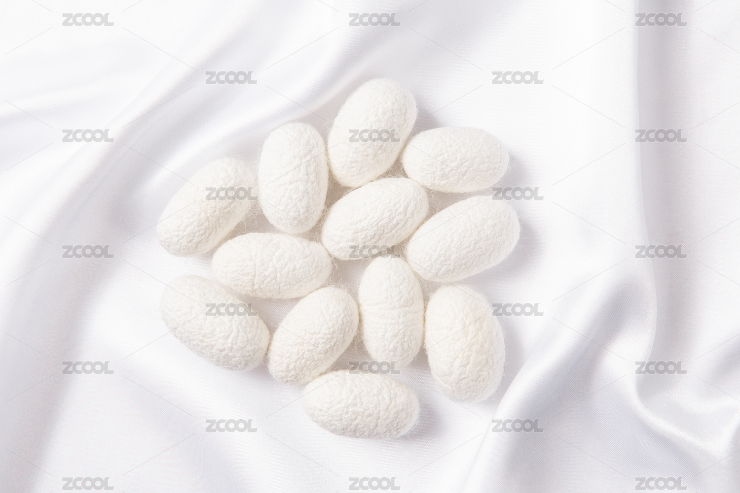 白色絲綢上的蠶繭