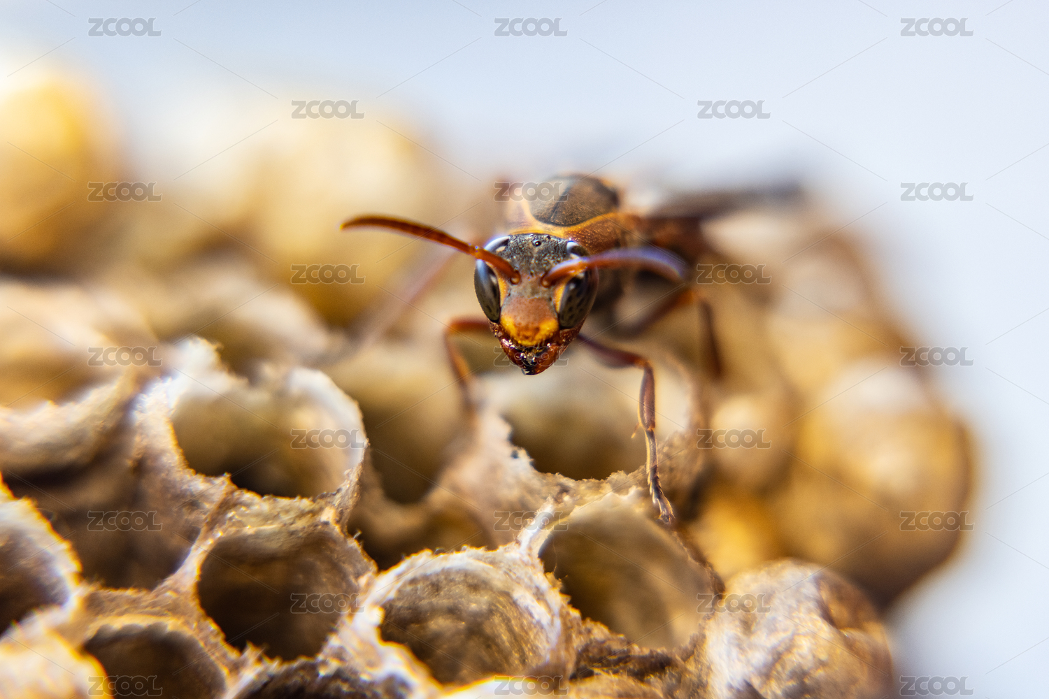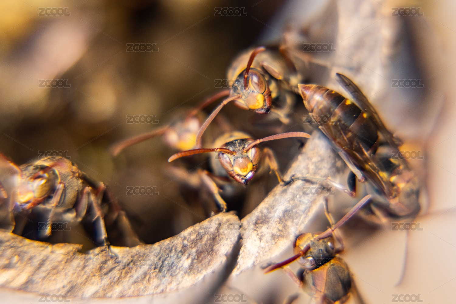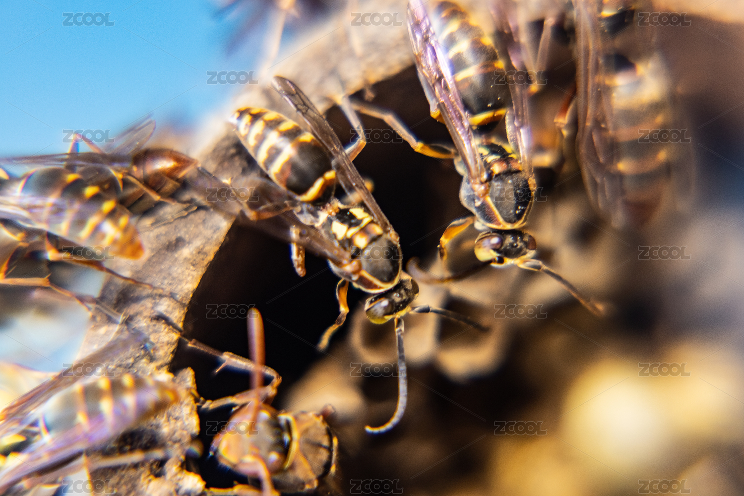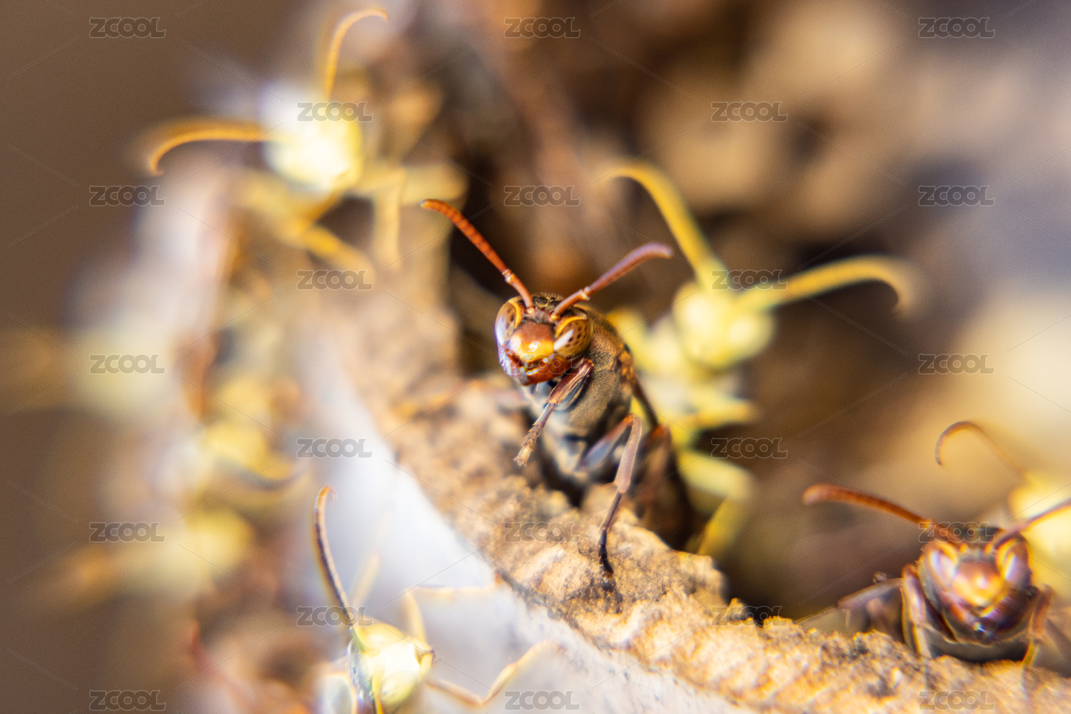 蜂巢里的黃蜂特寫