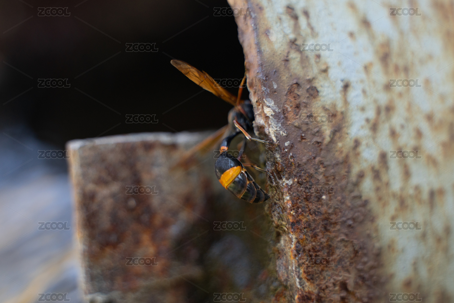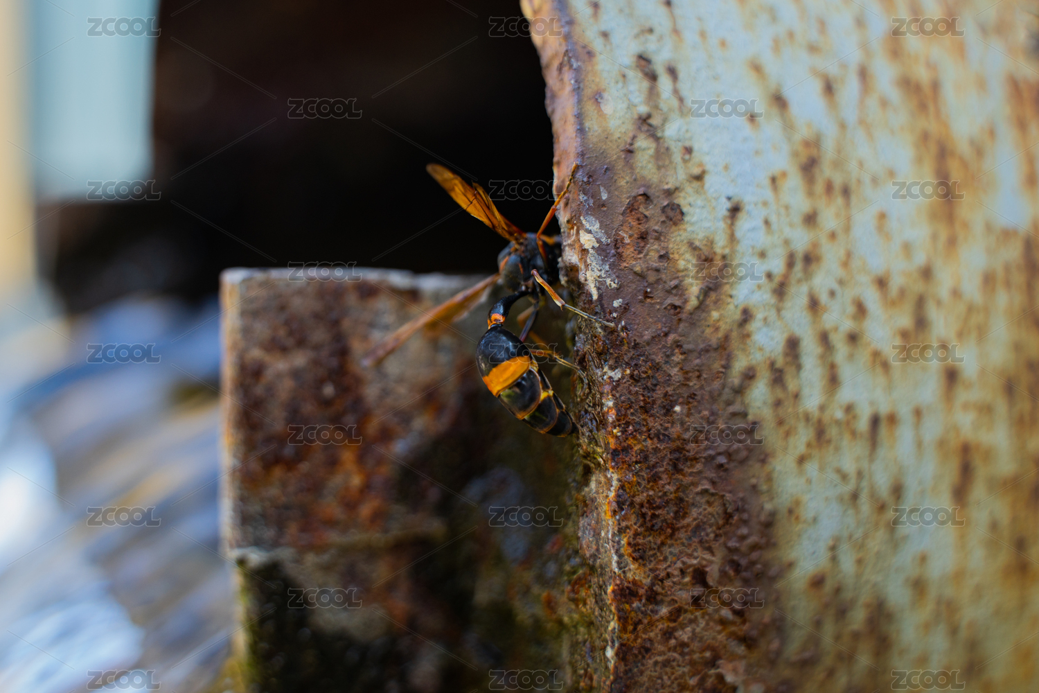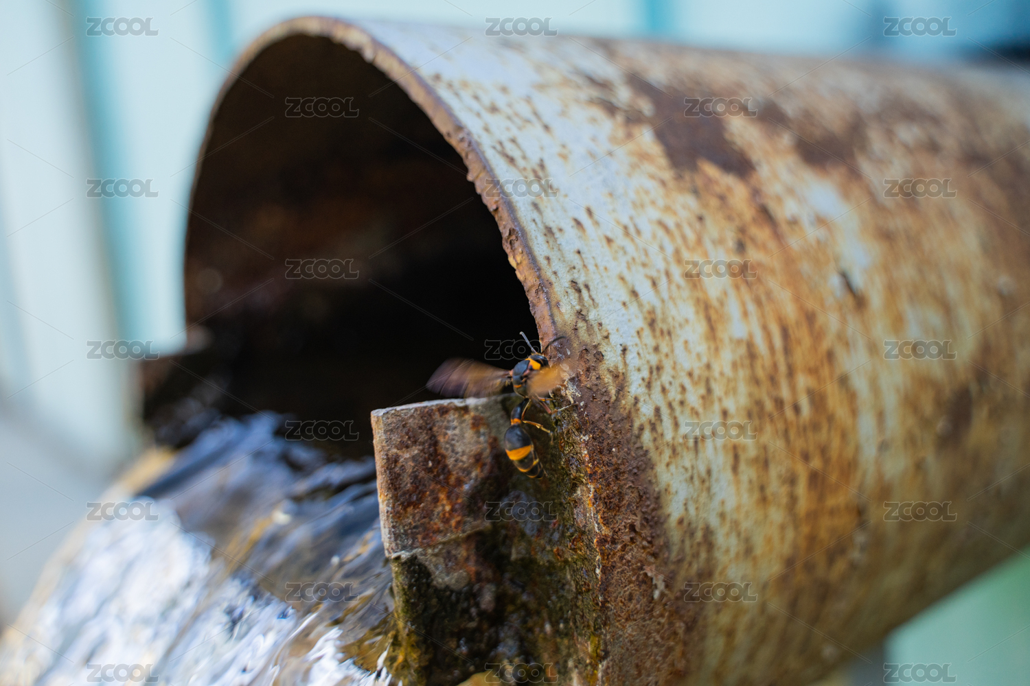 生銹管道上的黃蜂馬蜂