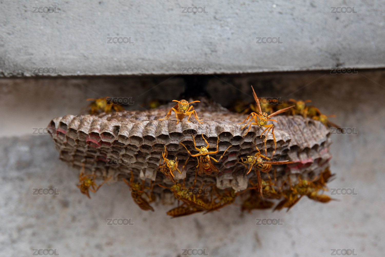水泥墻面上的黃蜂窩