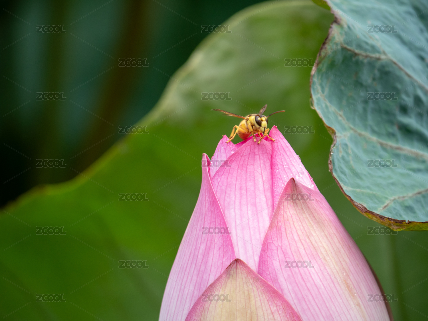 荷花上的黃蜂