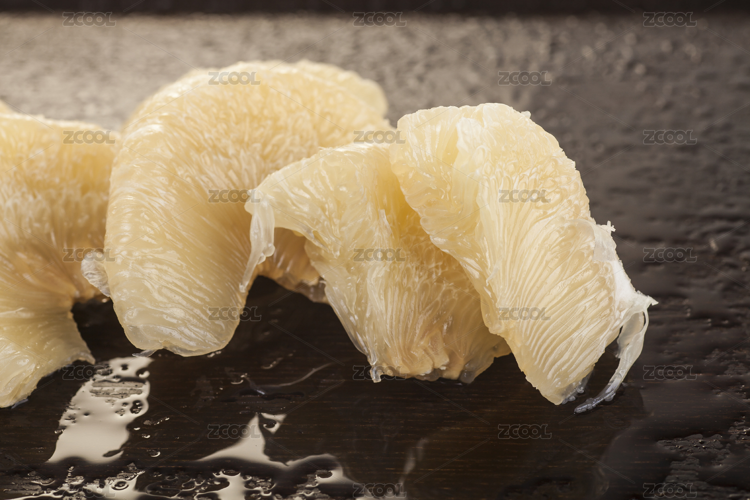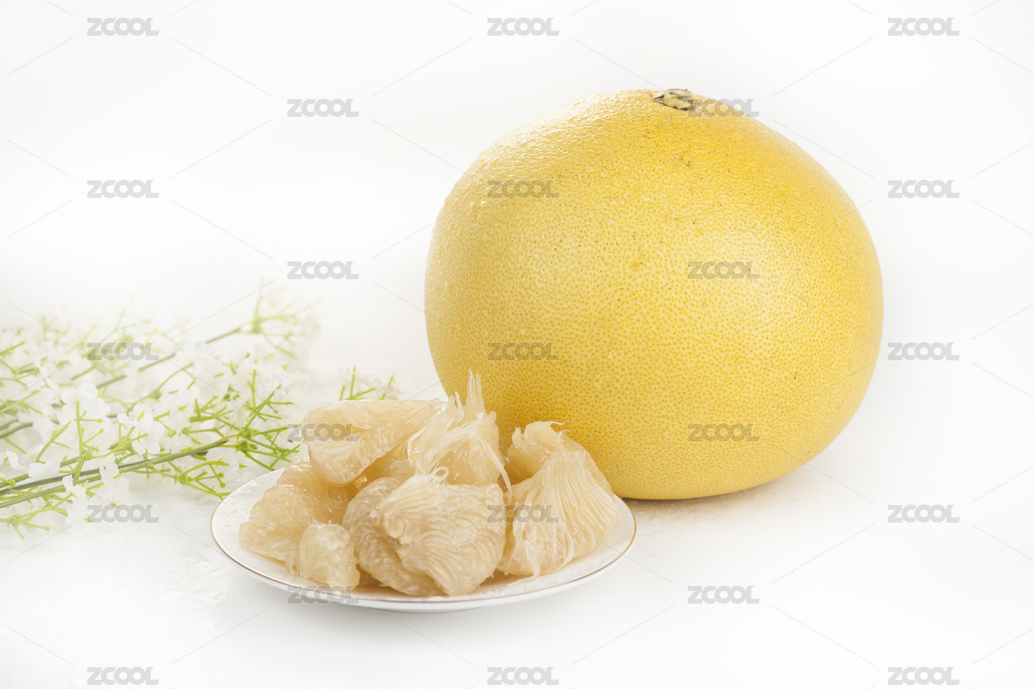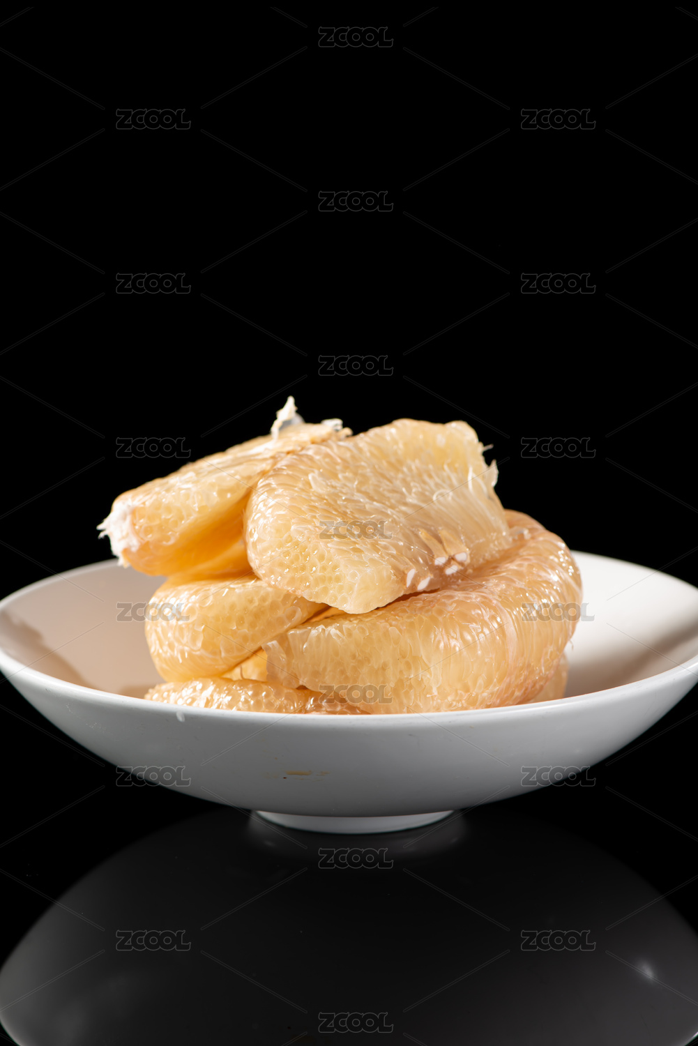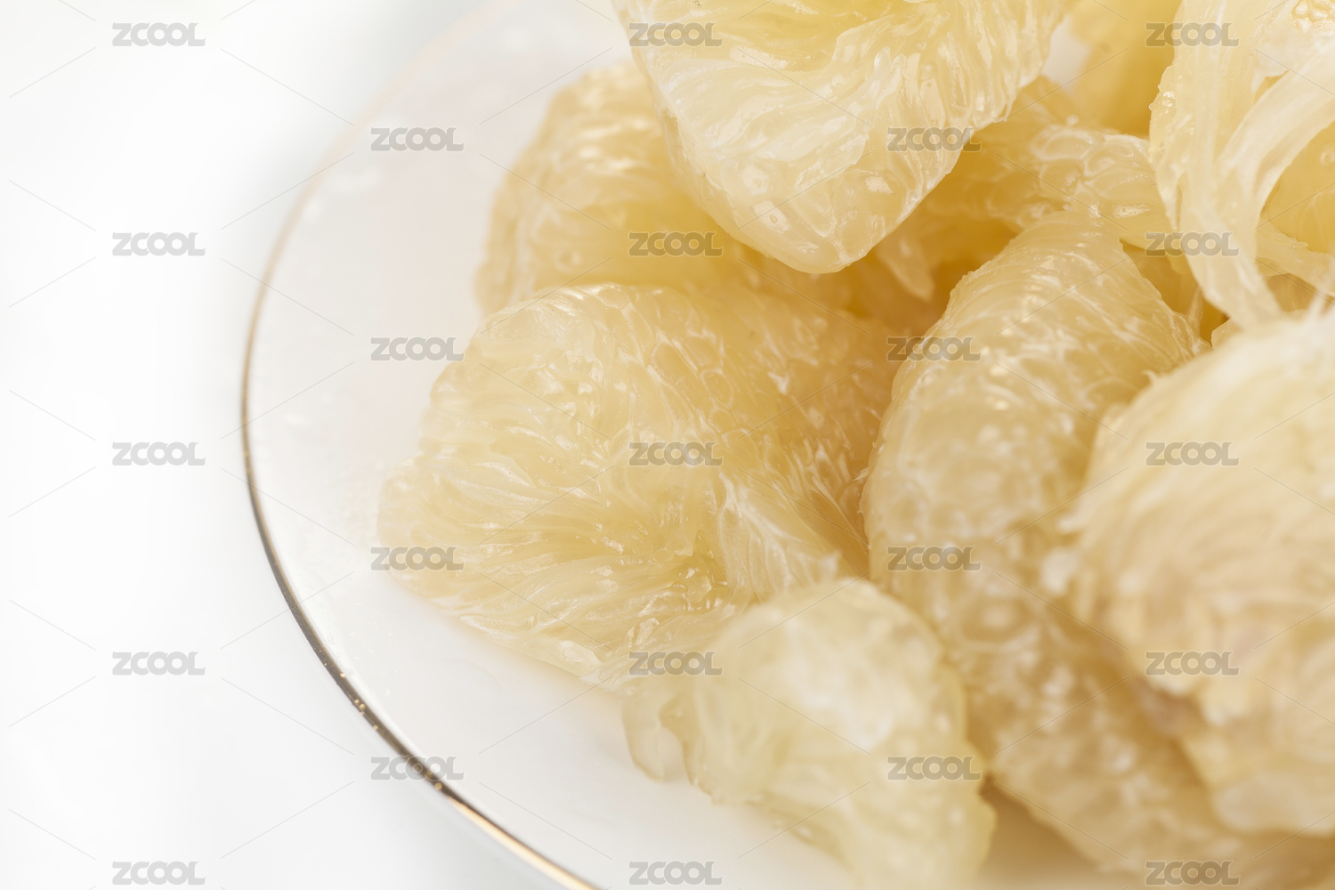 白底上放著去皮的半邊文旦柚果肉