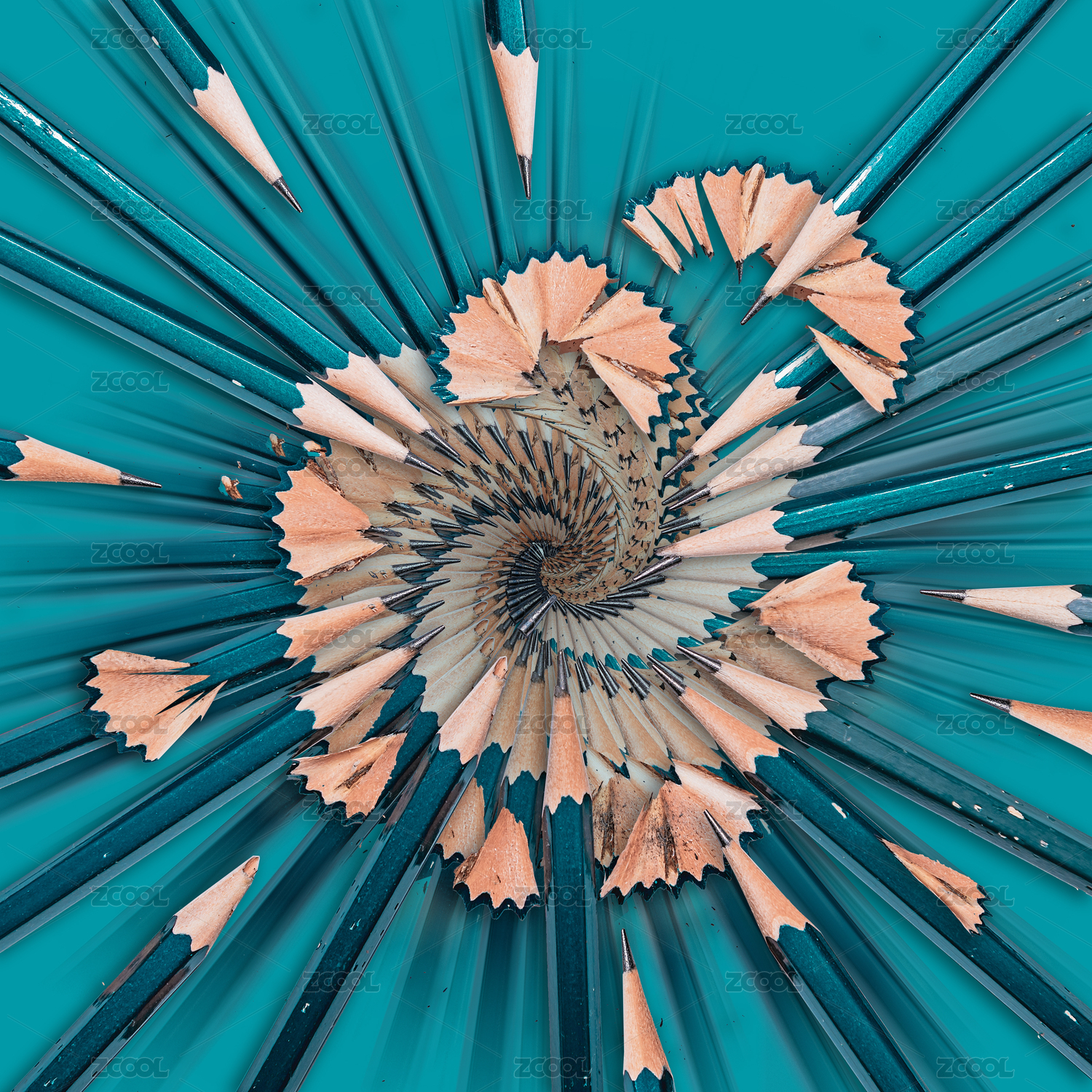 鉛筆與鉛筆屑構(gòu)成的旋渦畫(huà)面寓意內(nèi)卷時(shí)代