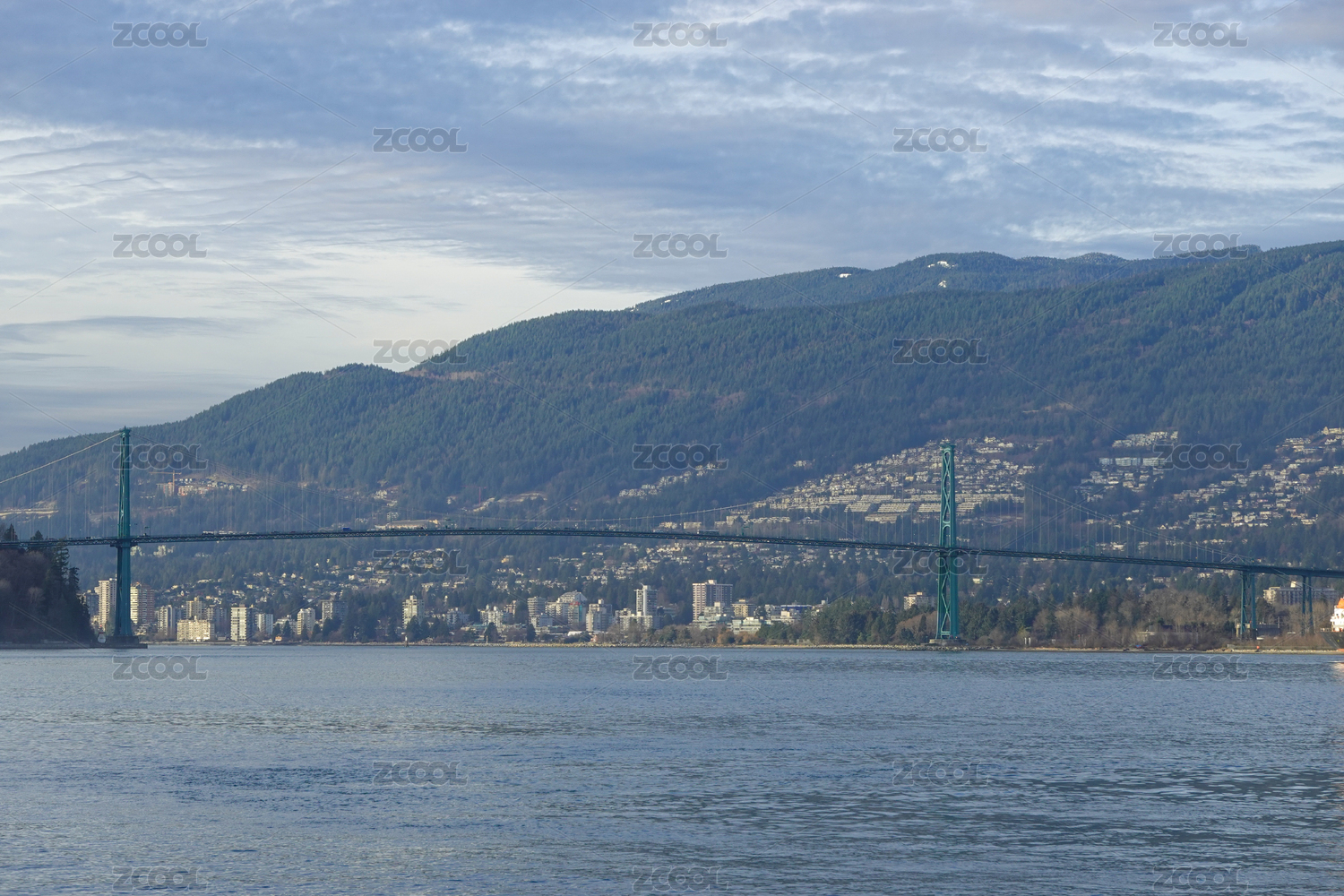 加拿大溫哥華傍晚海港與森林丘陵的柔光