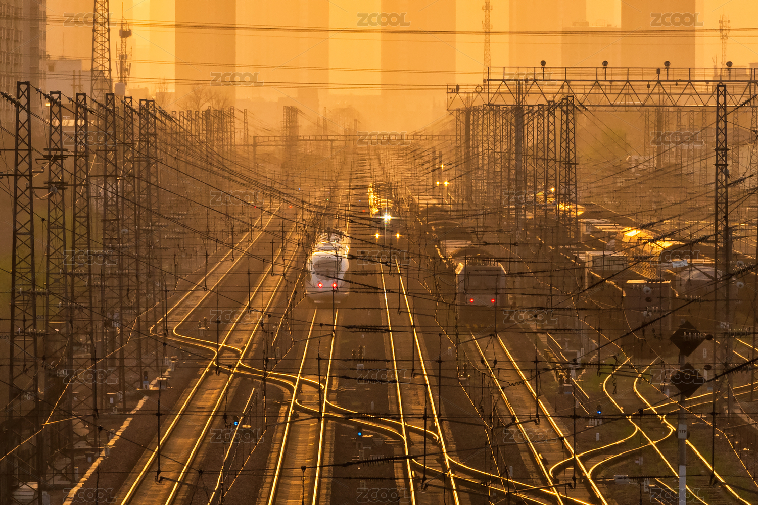 日落時分夕陽下的隴海鐵路大動脈與城市天際