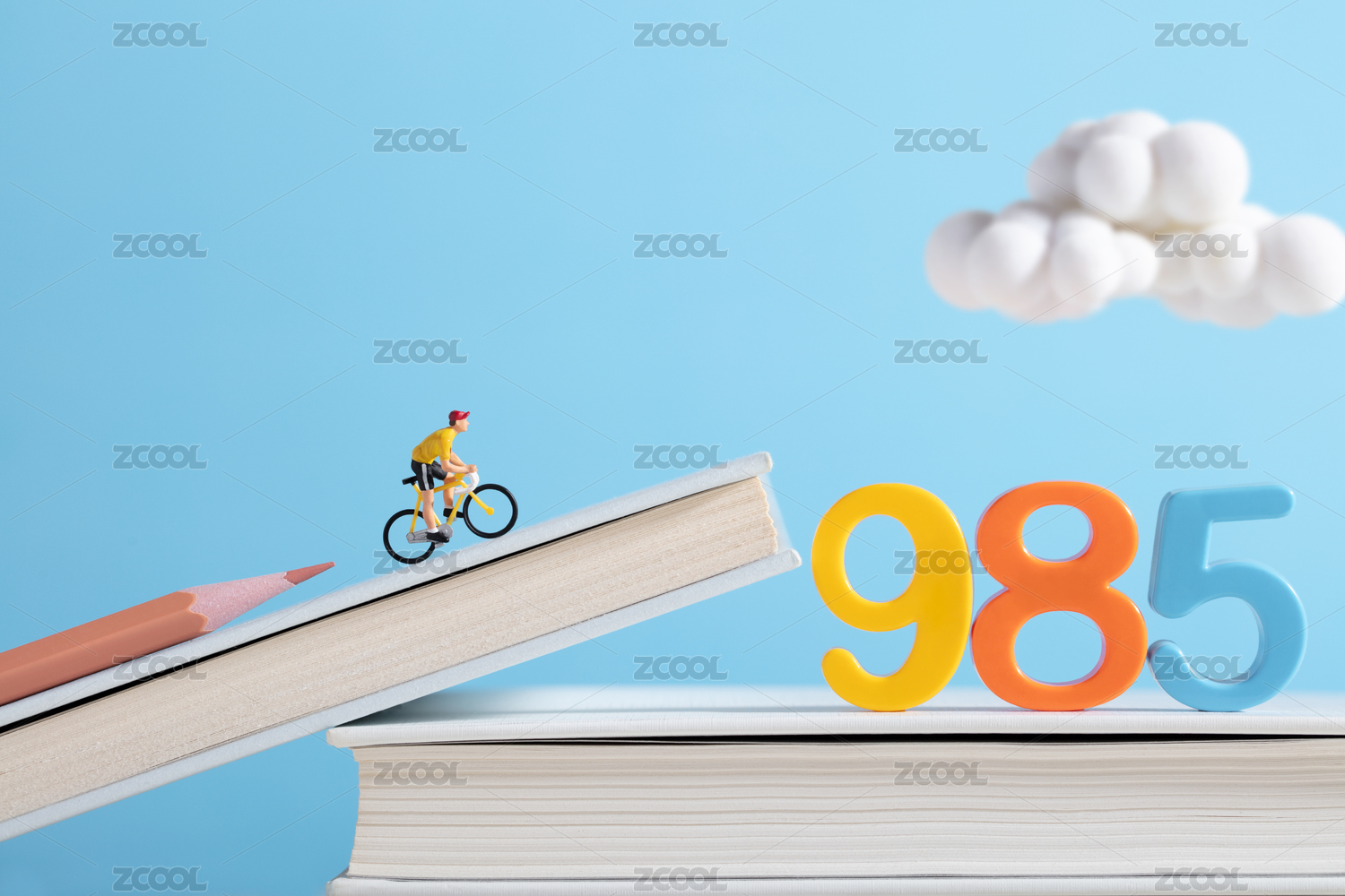 微縮創(chuàng)意書本上的985數(shù)字與沖刺的考生