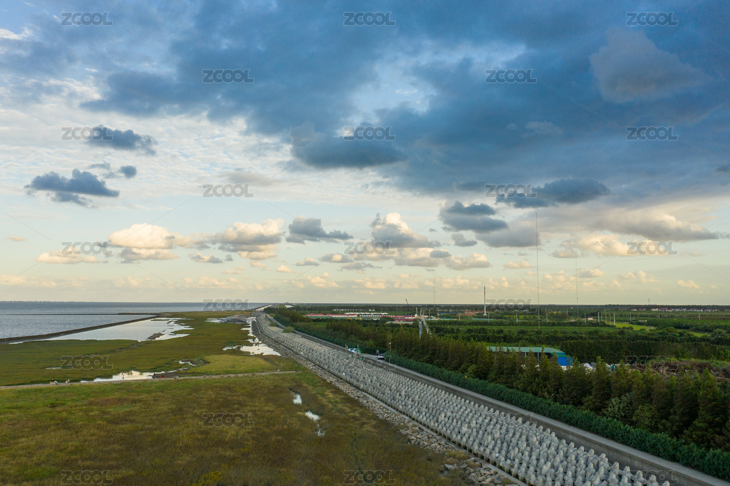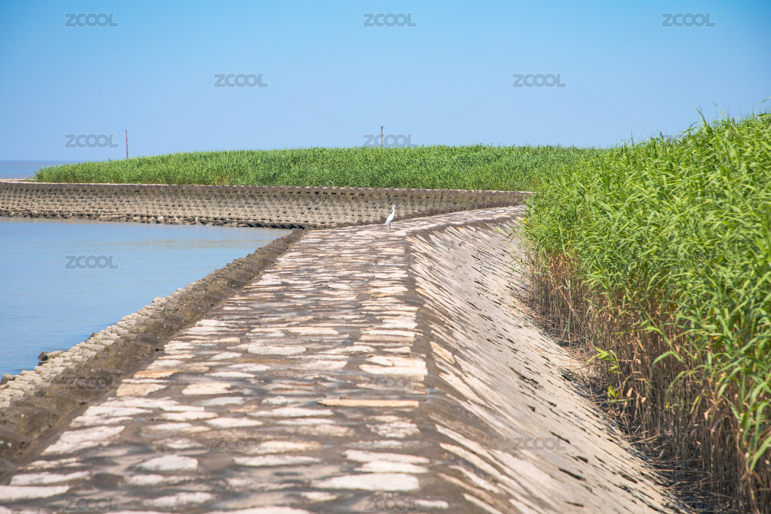 上海市崇明區(qū)橫沙島上的迷人防洪堤