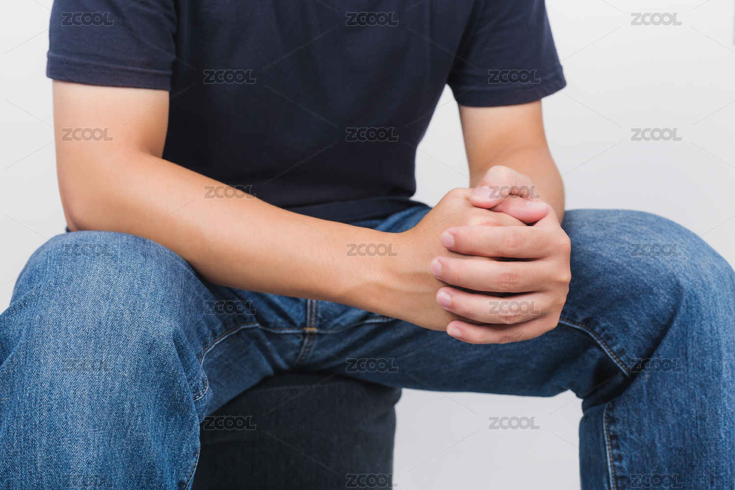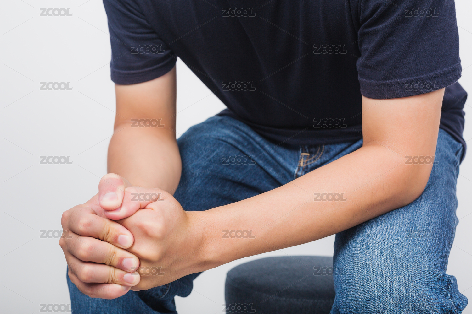 坐在凳子上握拳的亞洲男人