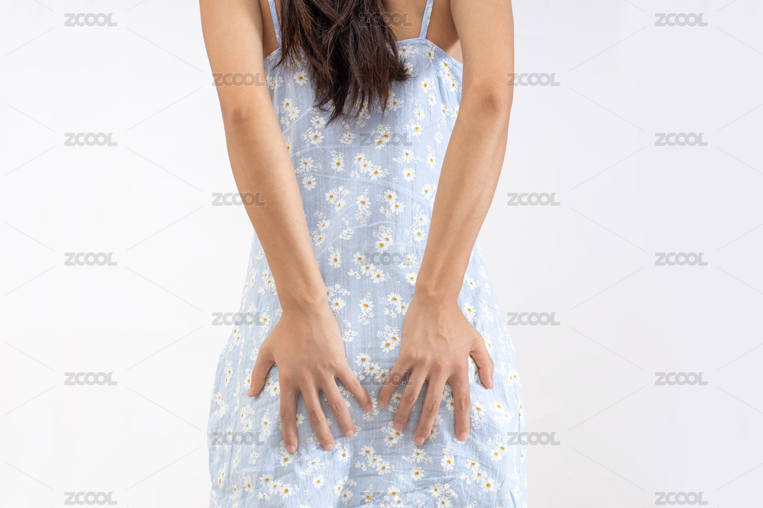 女生按壓著臀部疼痛難忍