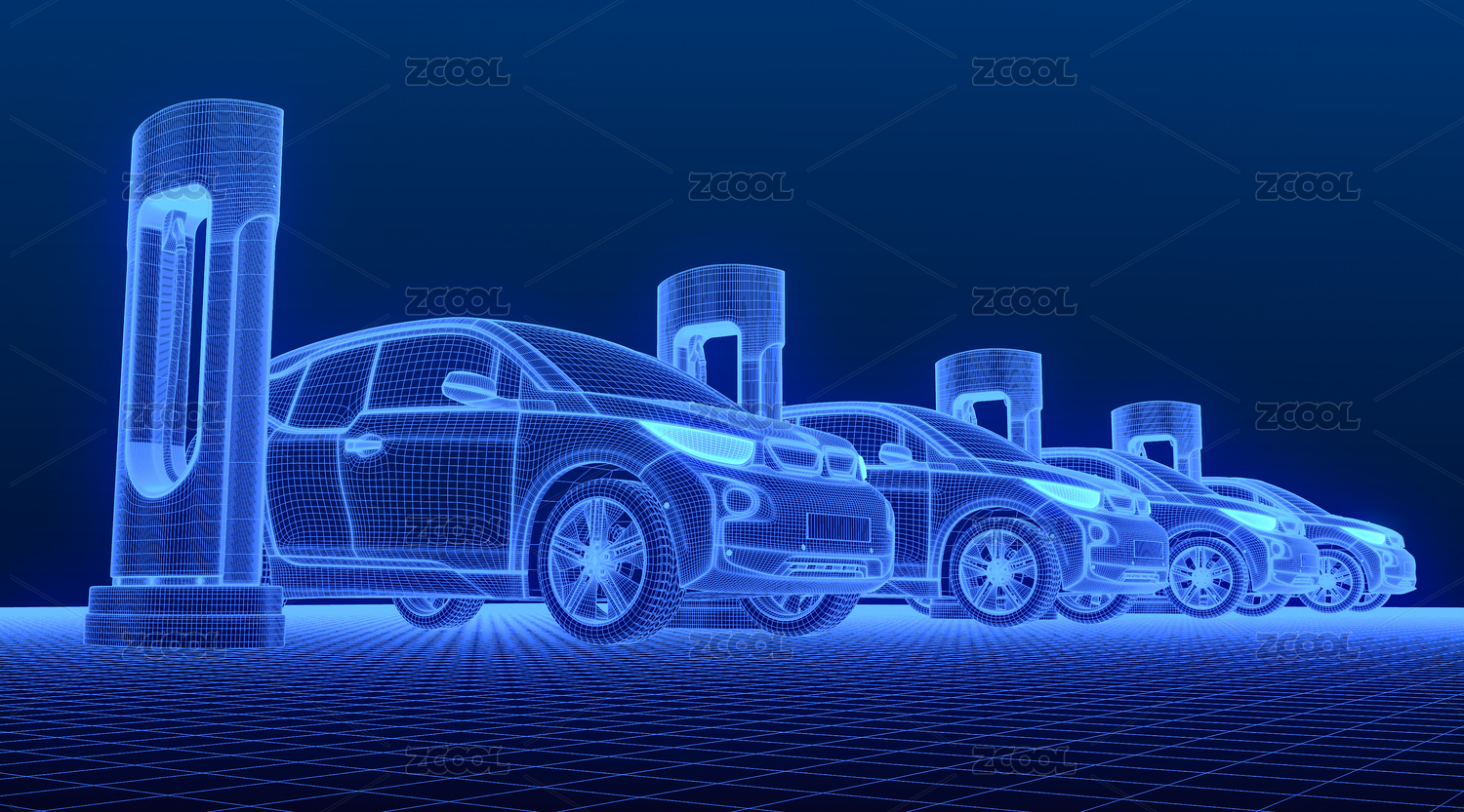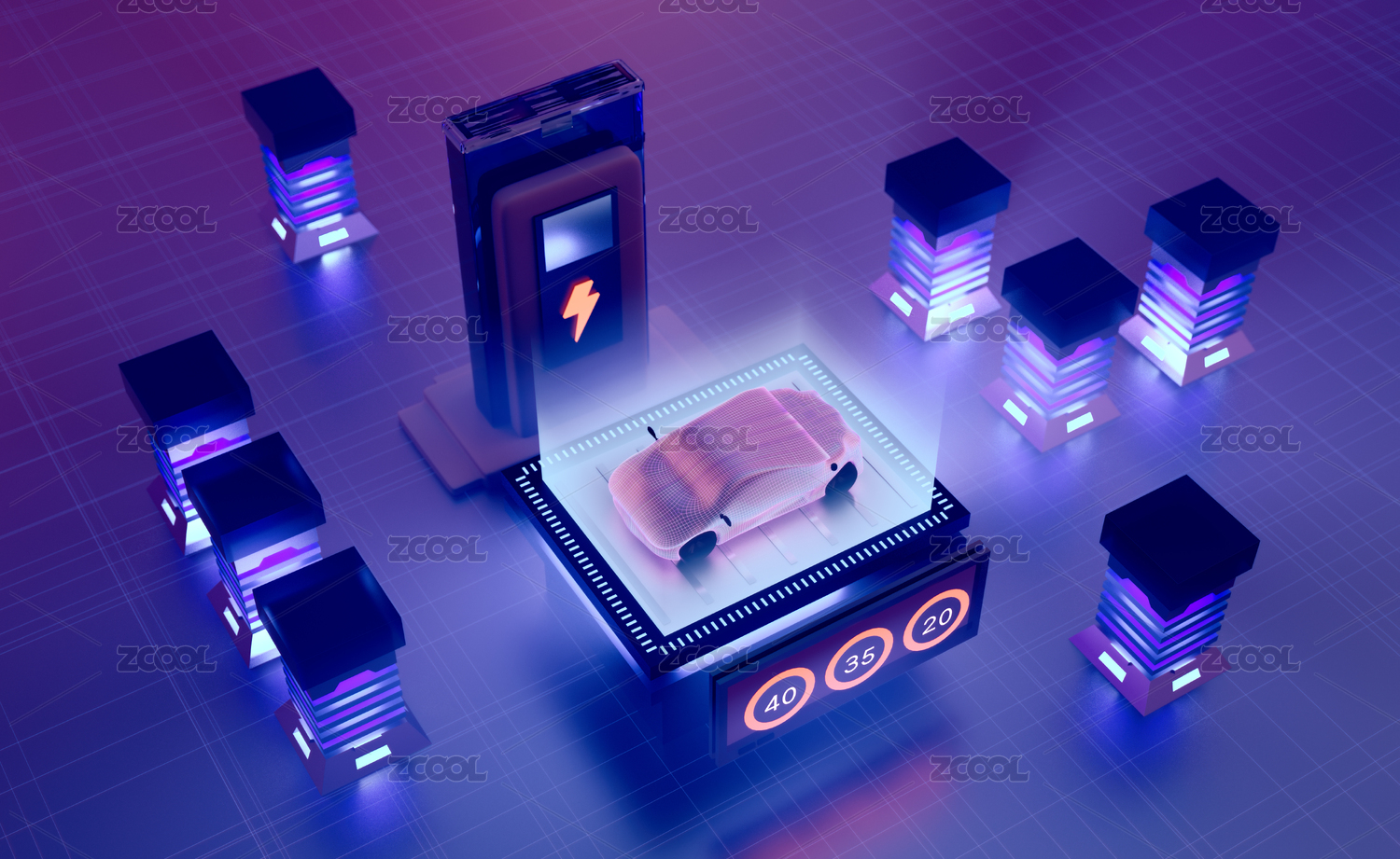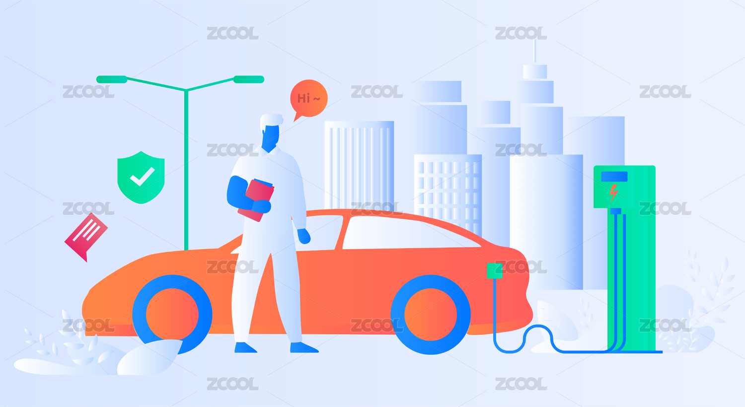 新能源態(tài)電動汽車未來運輸充電樁矢量圖