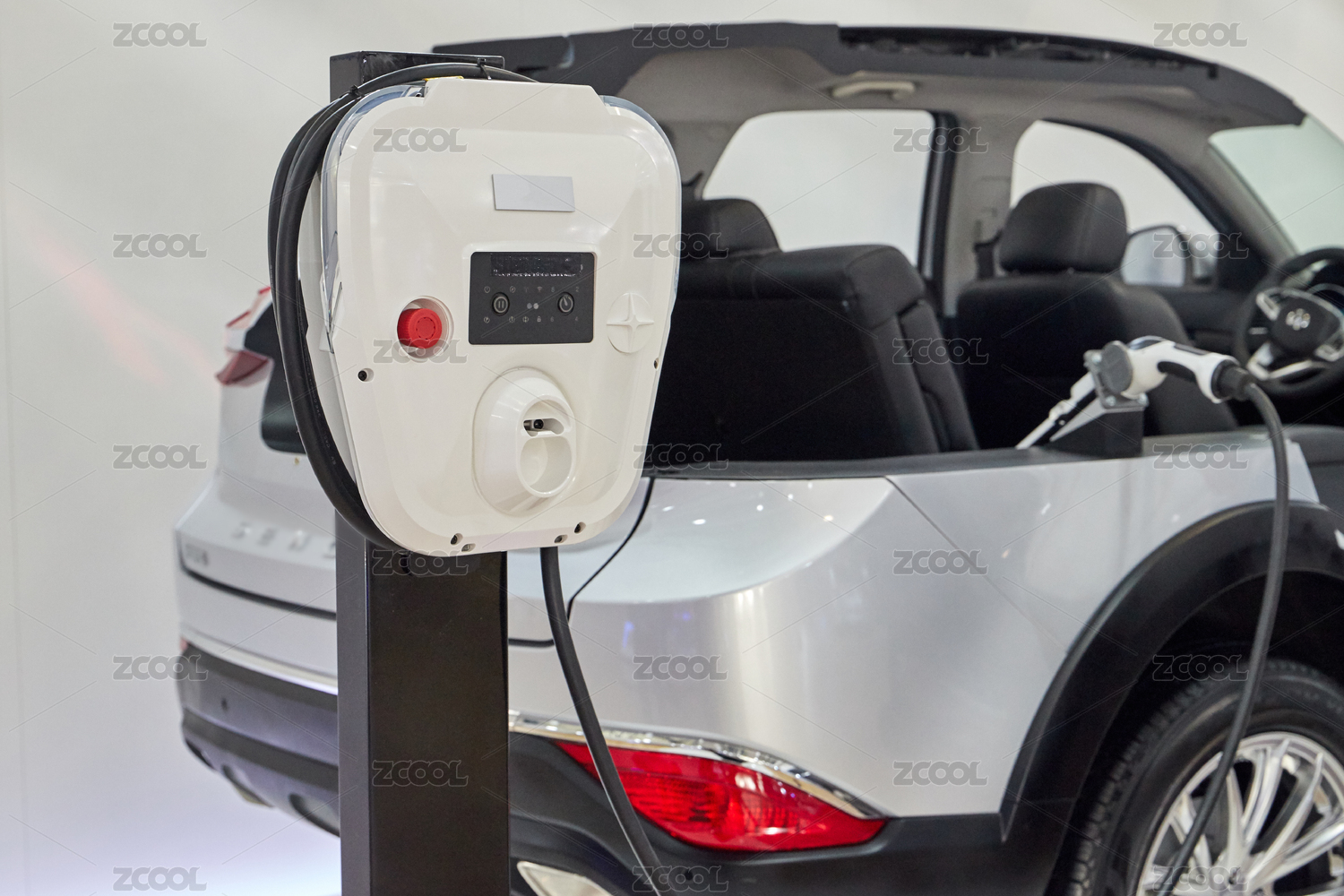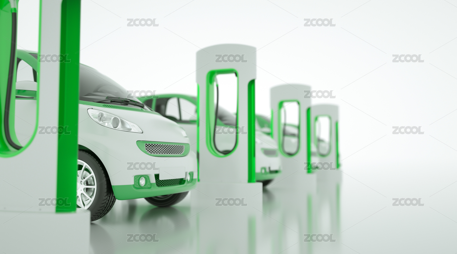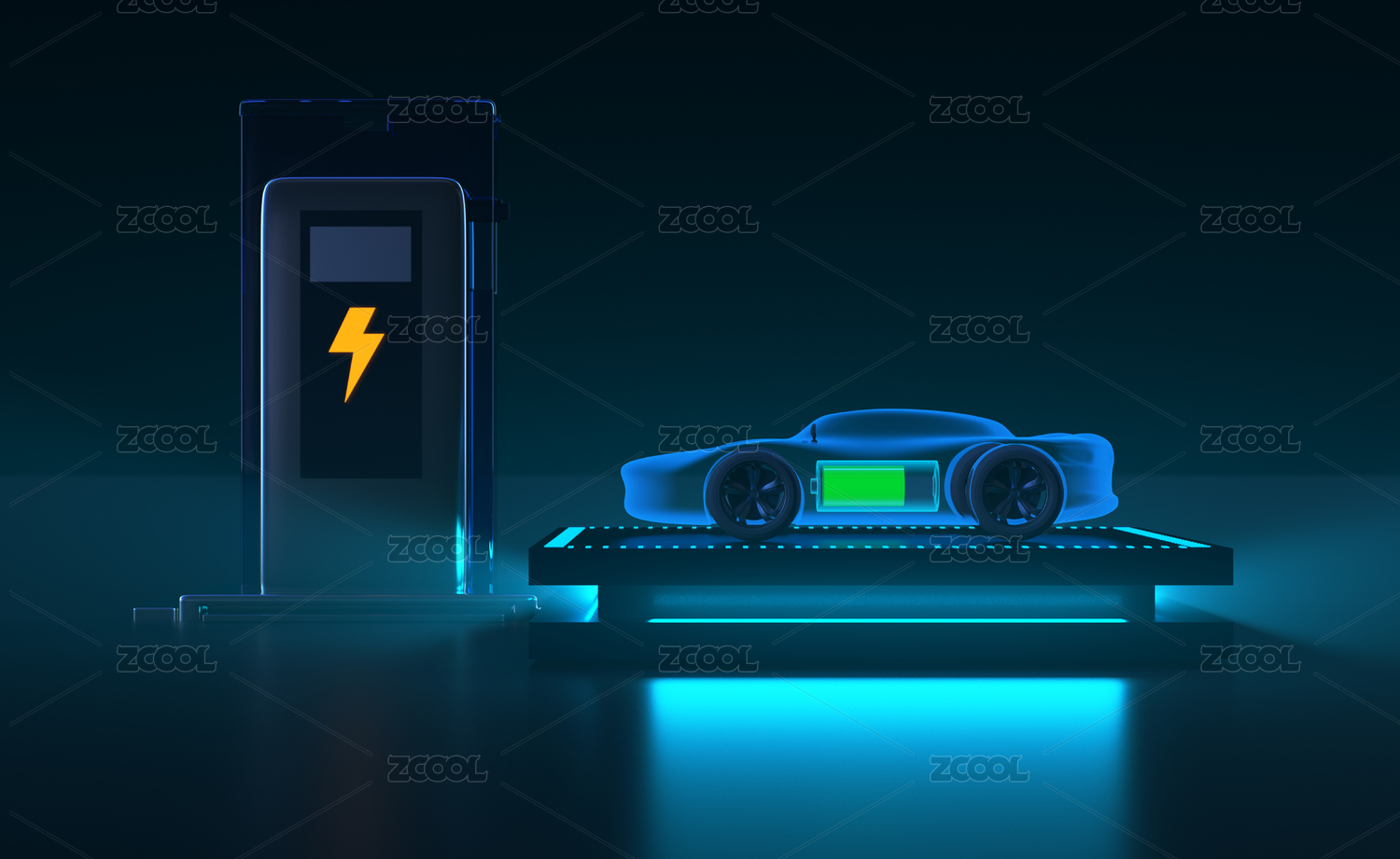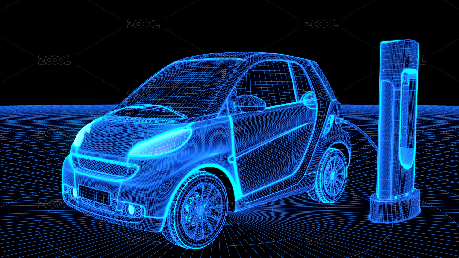 新能源態(tài)電動汽車未來運輸充電樁矢量圖