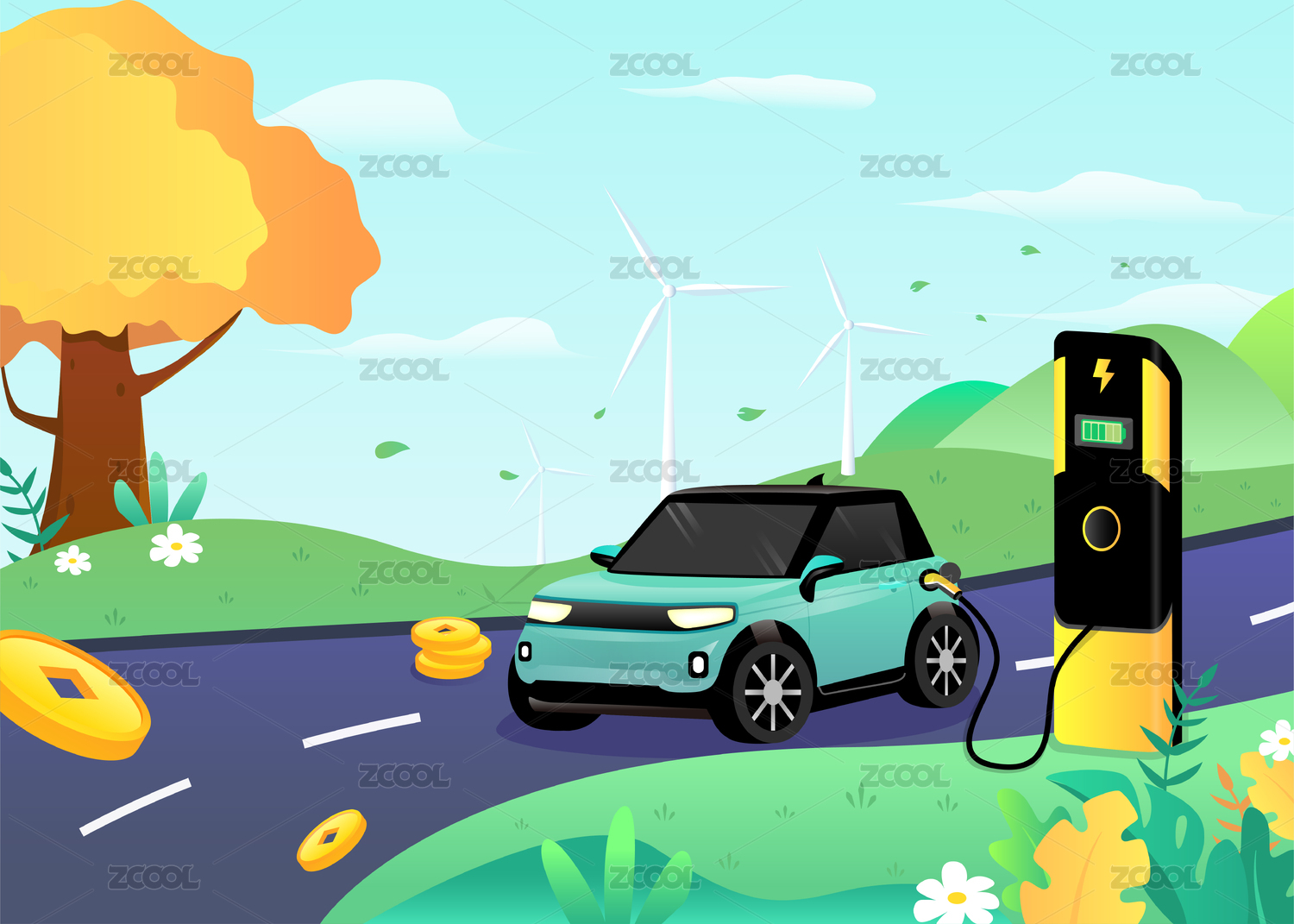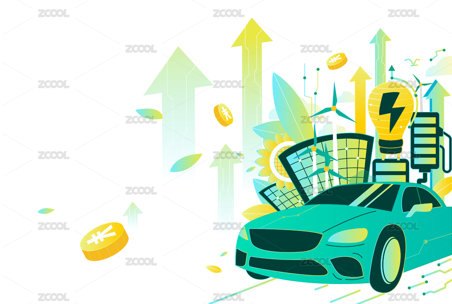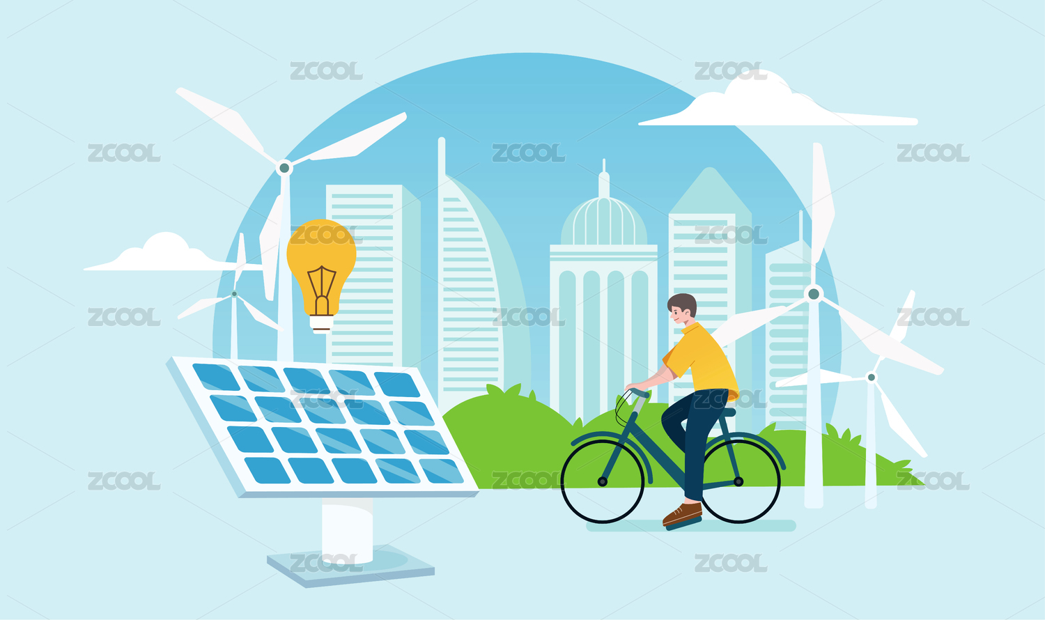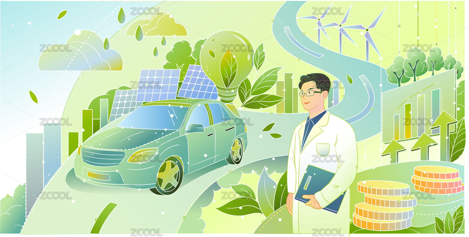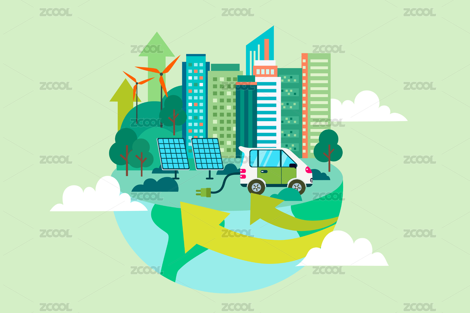 綠色環(huán)保新能源扁平國潮矢量插畫