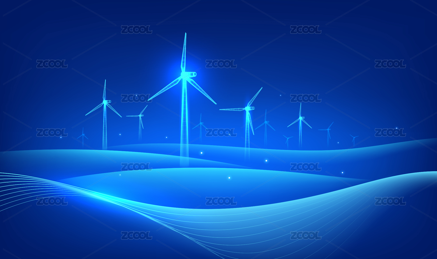 環(huán)保主題可再生能源風(fēng)力發(fā)電科技感插圖