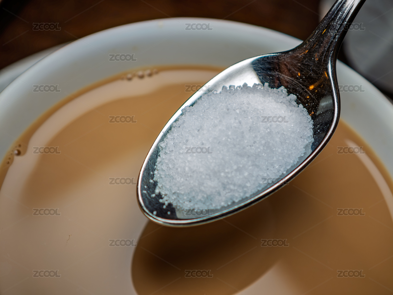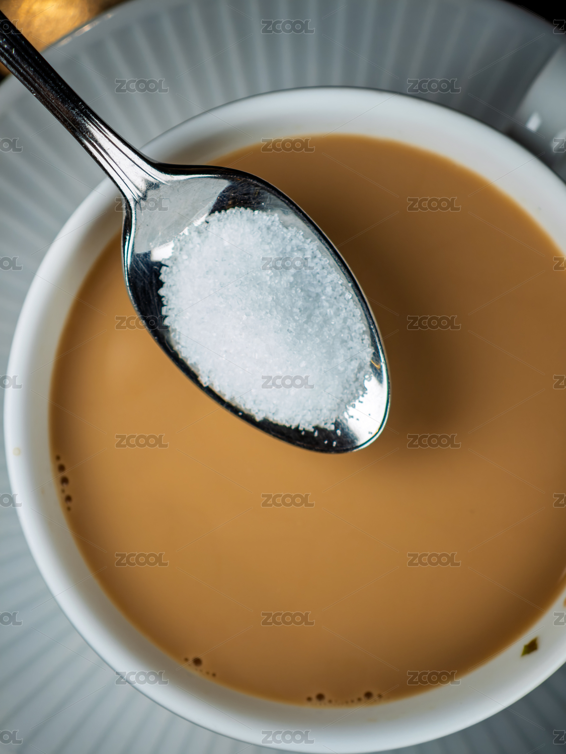 往一杯咖啡加入一勺白砂糖