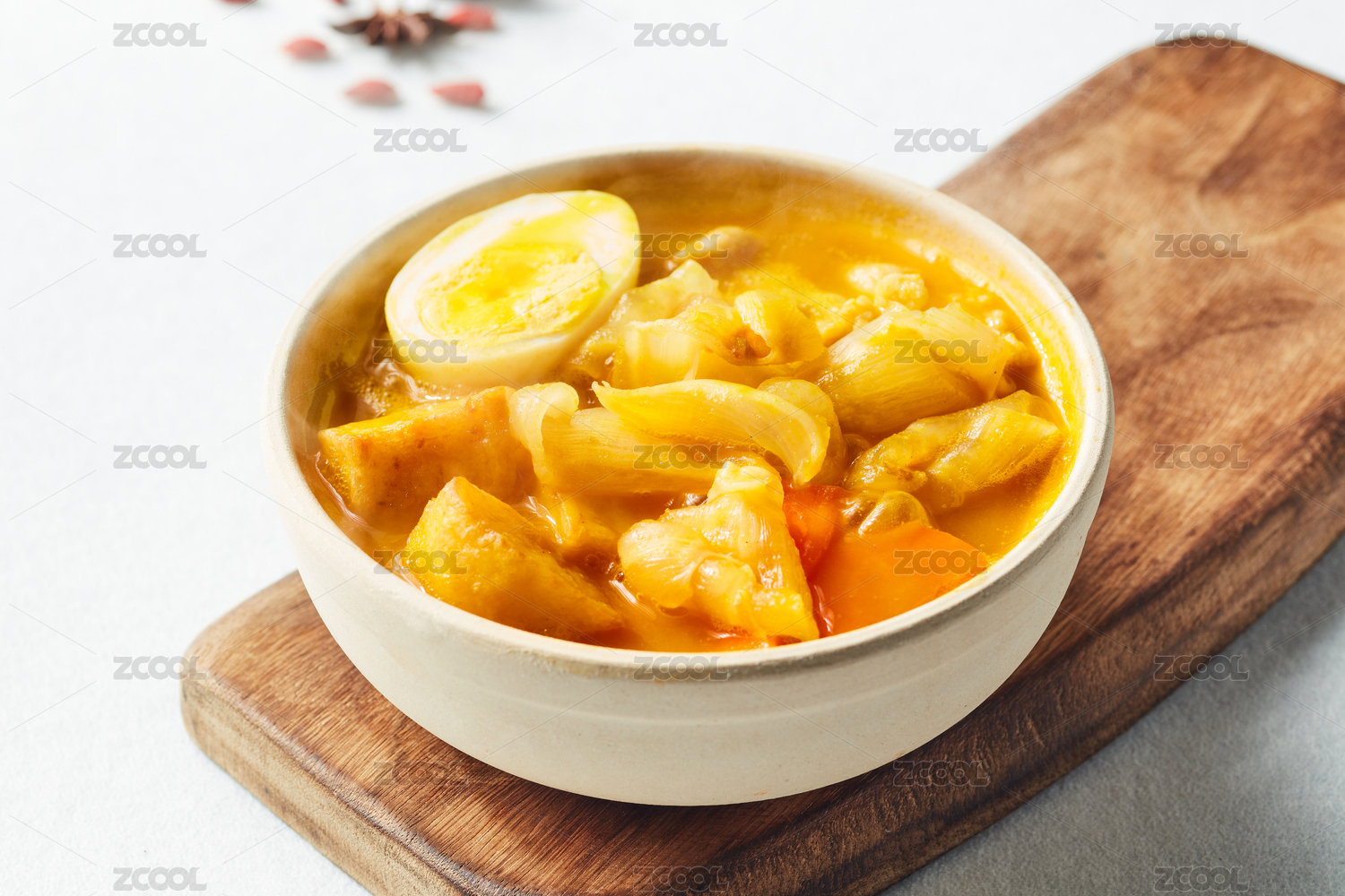 放在白色盤(pán)子里的金湯番茄燉牛腩