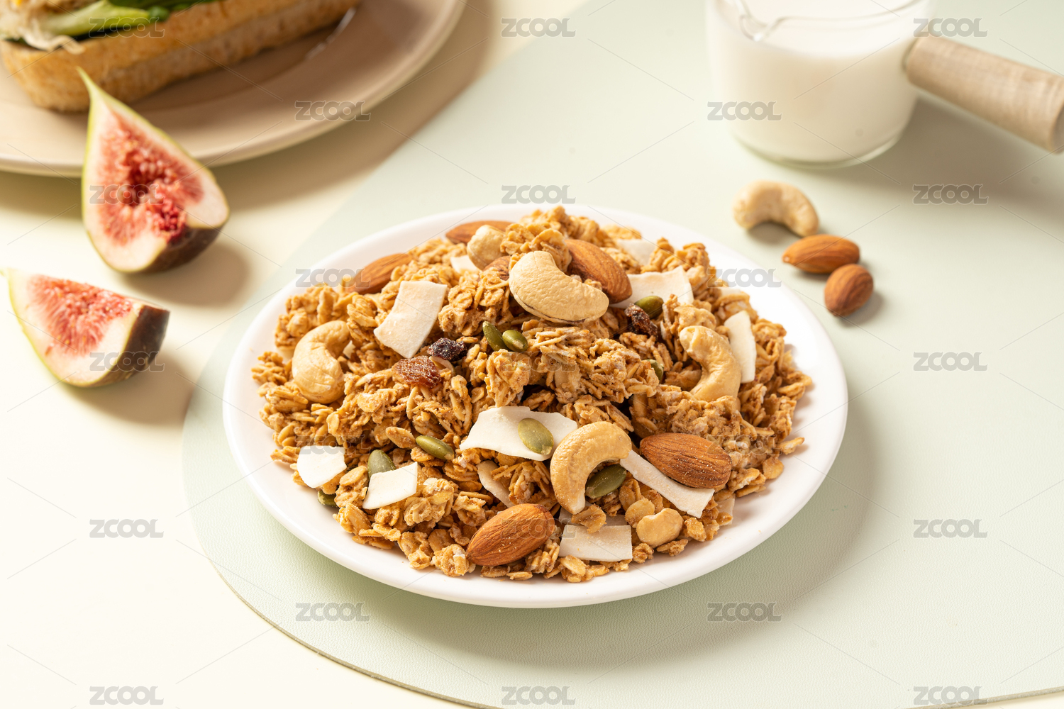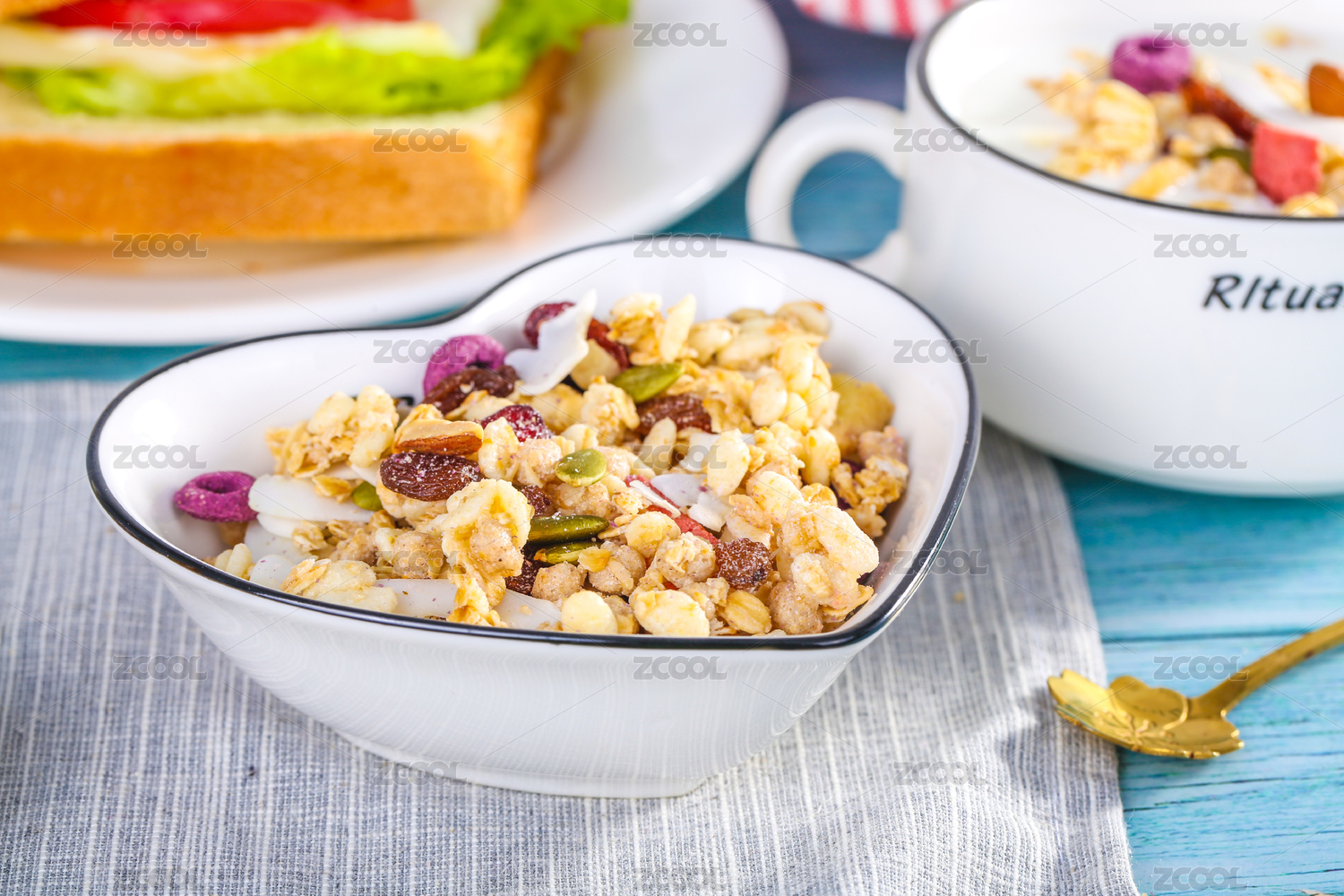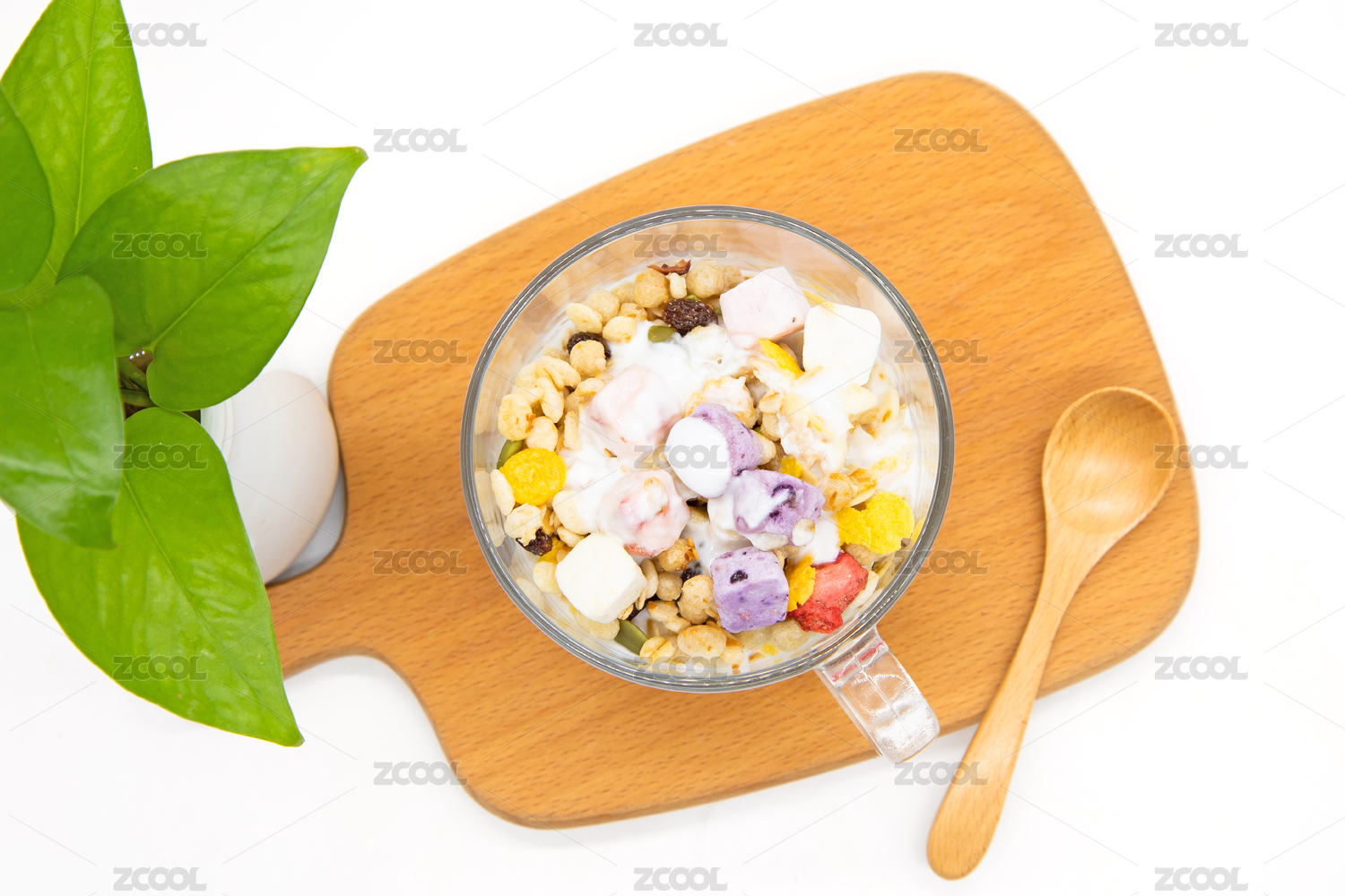 白色背景營養(yǎng)早餐一杯酸奶燕麥脆