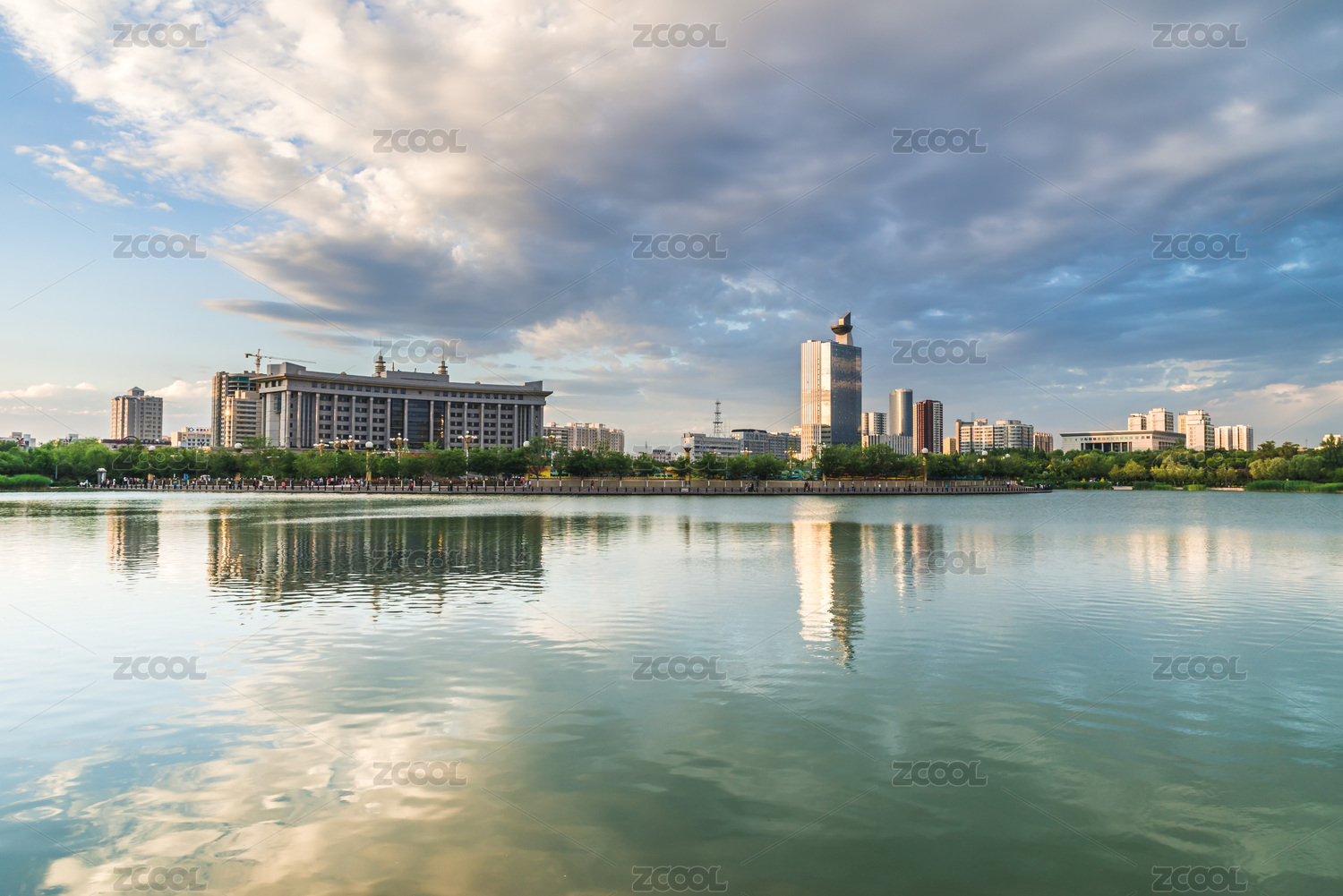 棗莊市新城人工湖及周邊的建筑和風(fēng)景