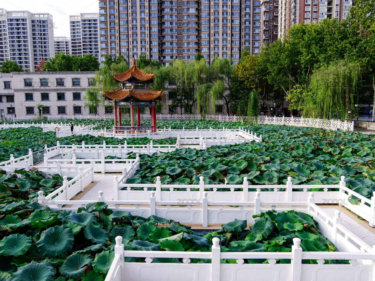 西安文理學(xué)院人工湖和涼亭