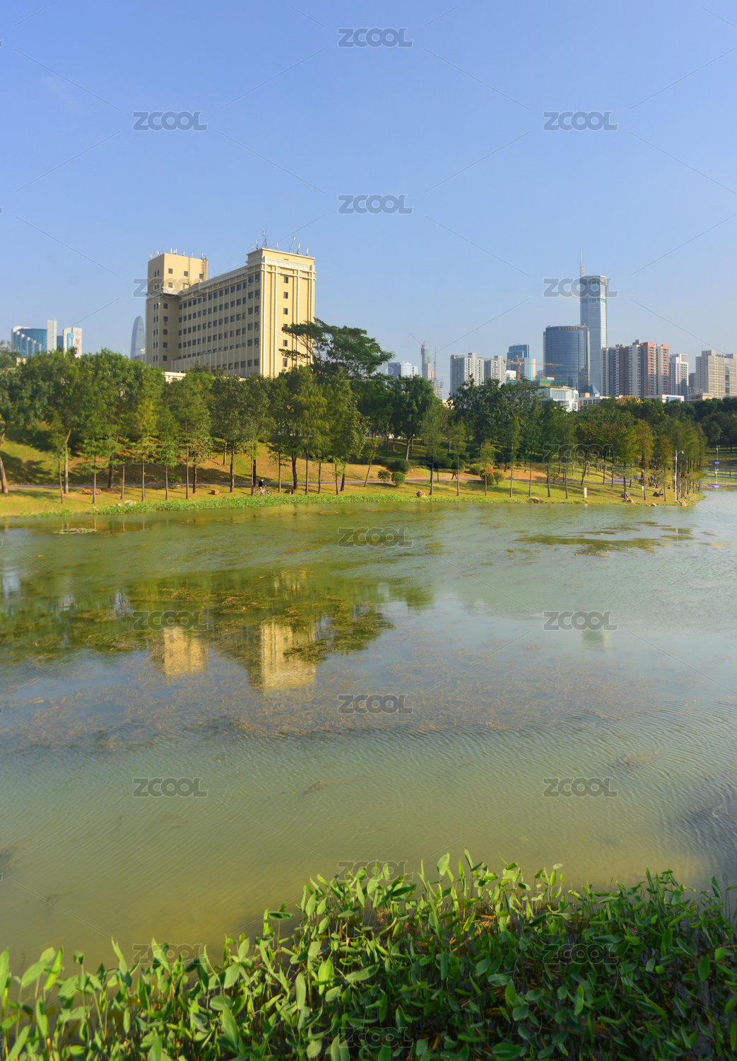 中國廣東深圳中心公園人工湖濕地及城市風(fēng)光
