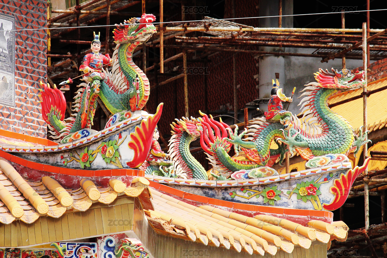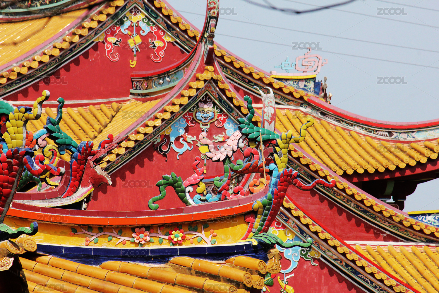 中國廈門土地廟屋頂上的閩南傳統(tǒng)工藝藝術(shù)