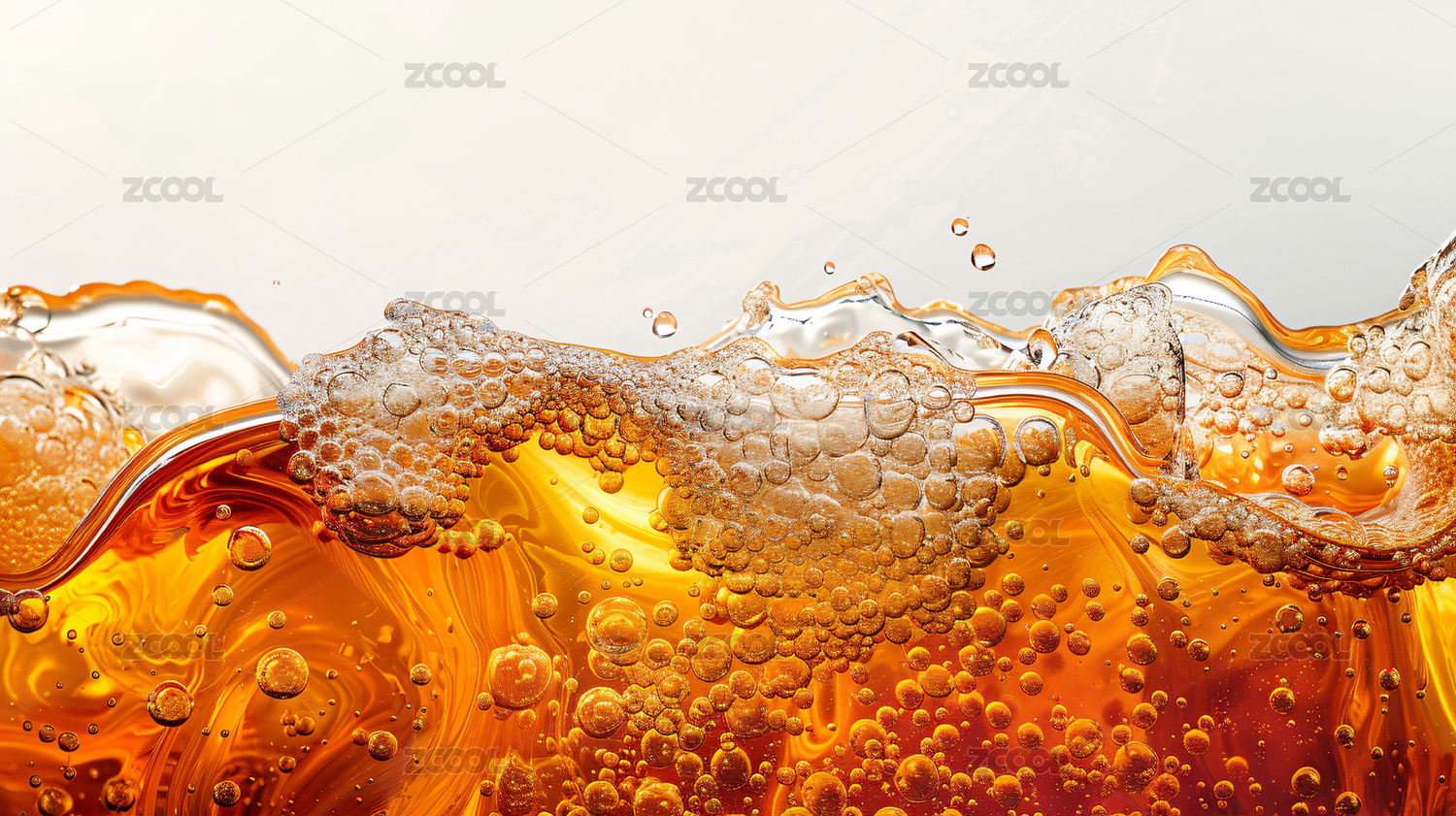 流動(dòng)的漂浮在空中的金黃色的啤酒液體